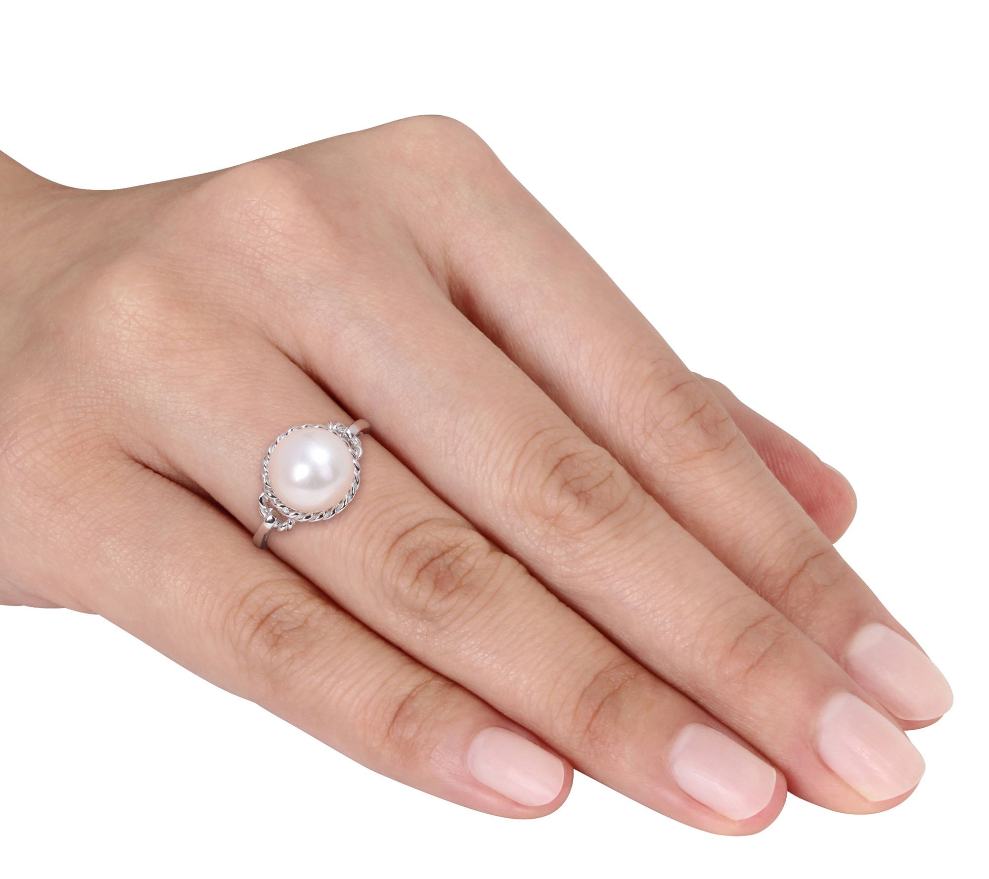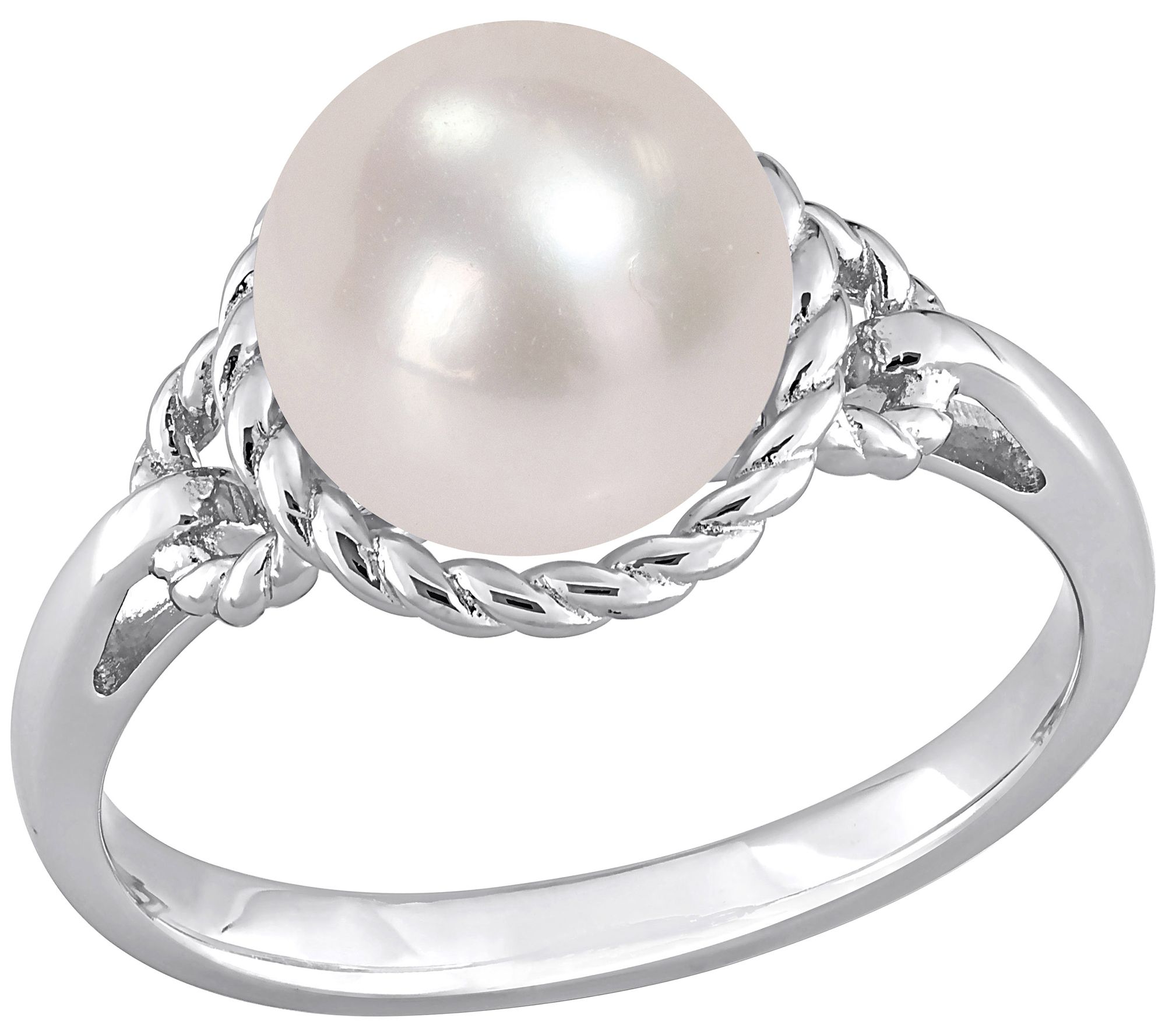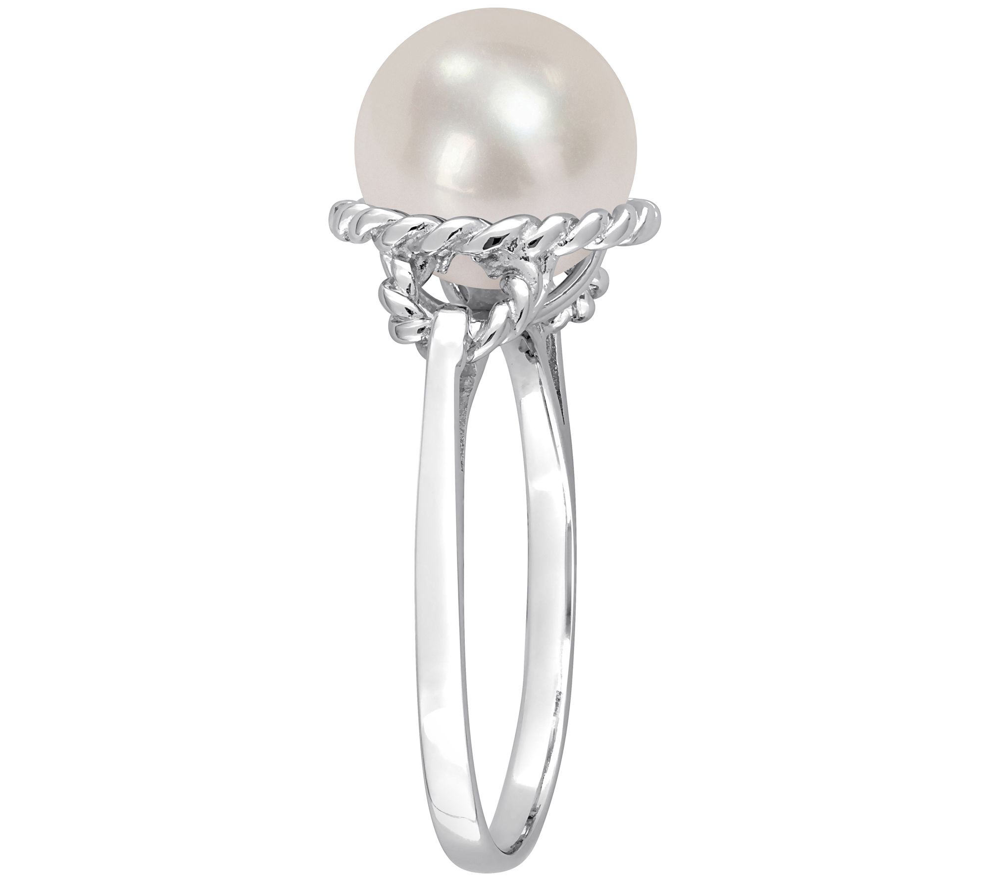 Make a statement of refinement with this elegant ring showcasing a large bleached-white cultured freshwater pearl set in an intricate rope frame. From Affinity.