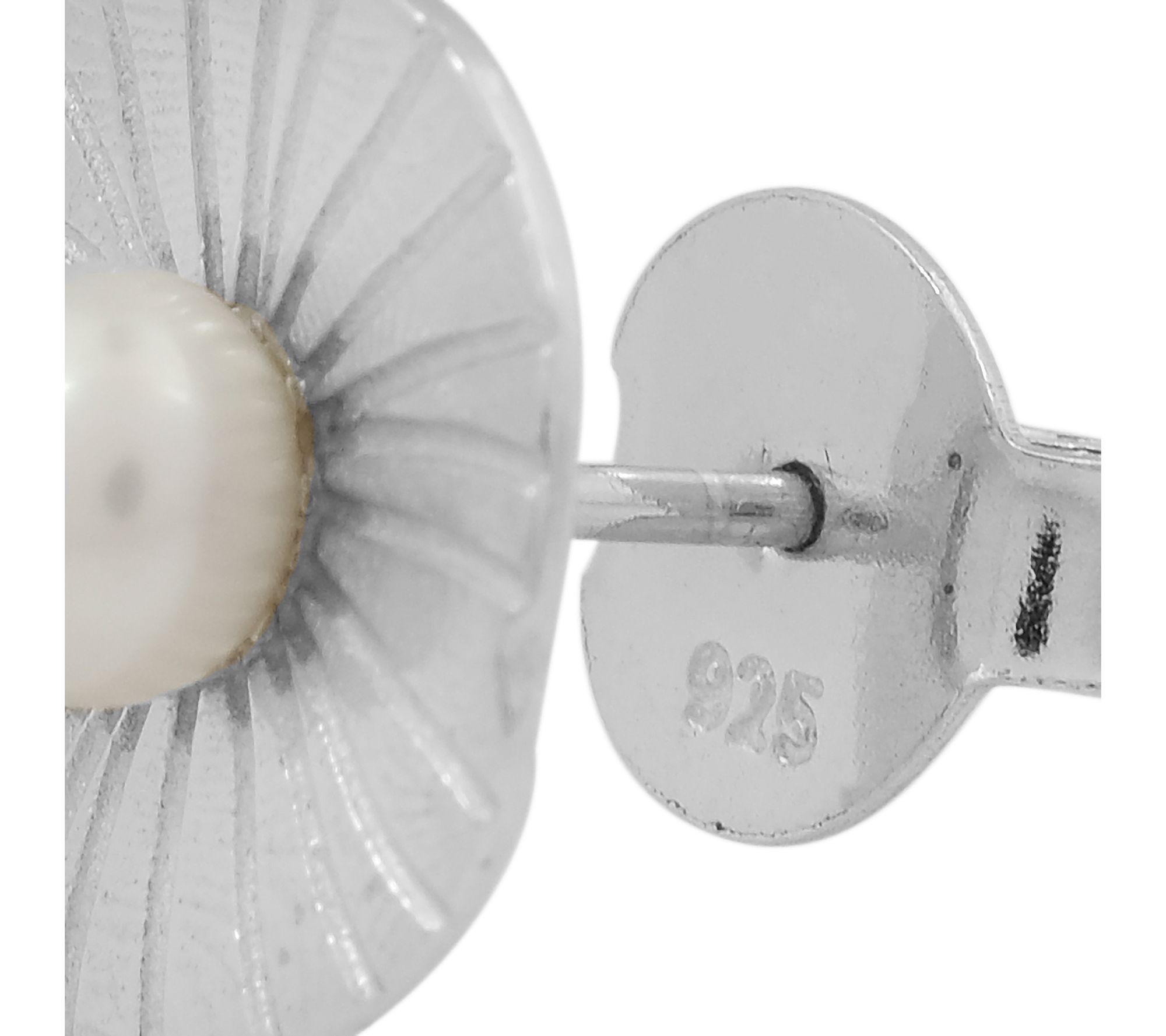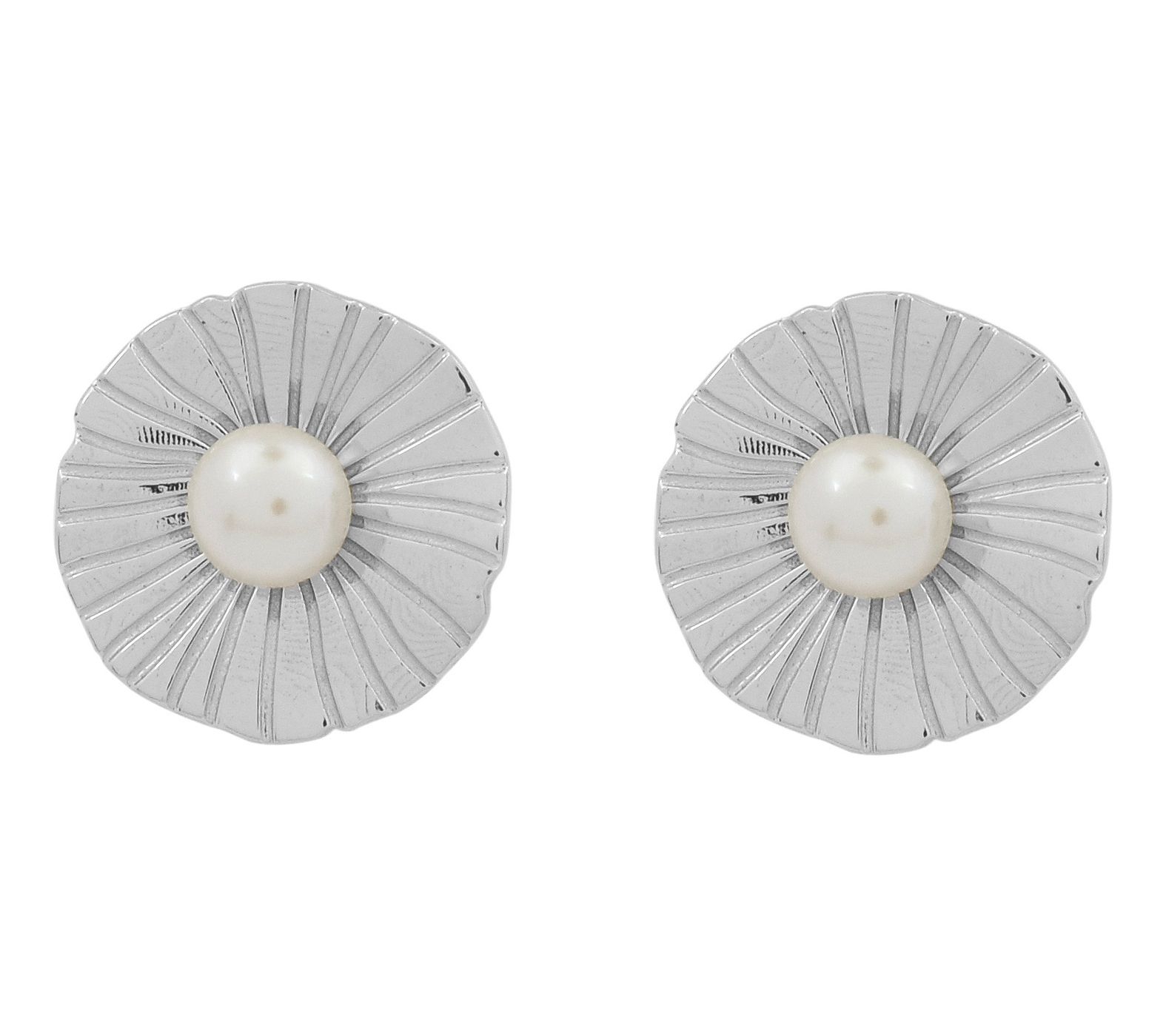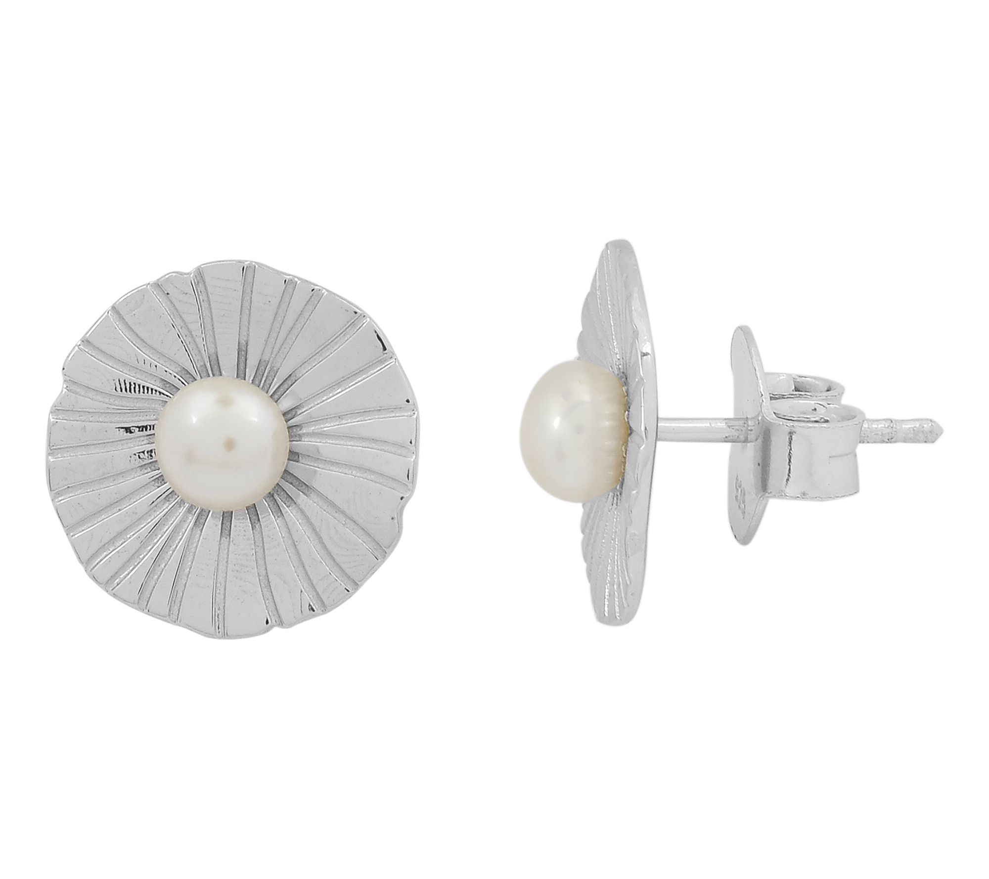 A fresh find for your everyday outfits, these stunning floral earrings pop with a 5mm cultured freshwater pearls set in the center. From Affinity Cultured Pearls.
