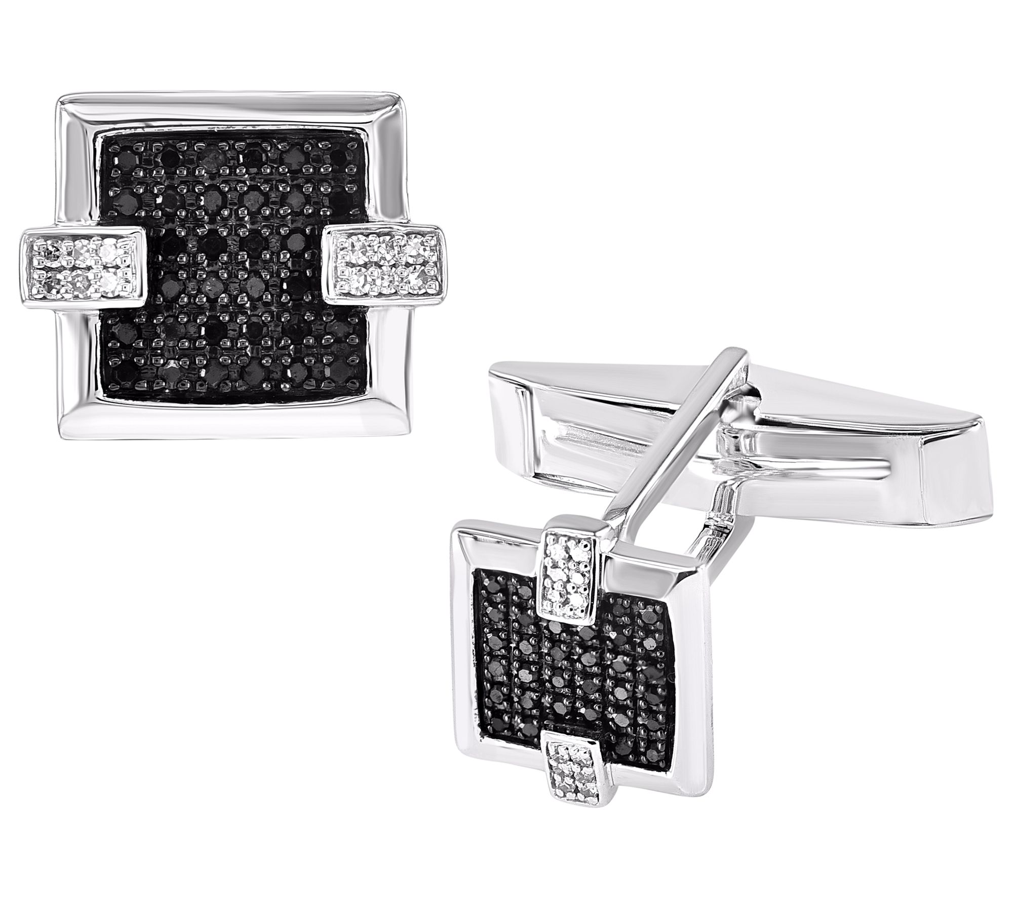 Elevate your formal wear with these handsome two-tone cuff links, combining the elegance of 14K white gold with the bold contrast of blacktone finish prongs. These cuff links, adorned with lab-created white and treated black diamonds, offer a sophisticated sparkle that complements any suit or tuxedo. From Affinity® Diamond Jewelry.