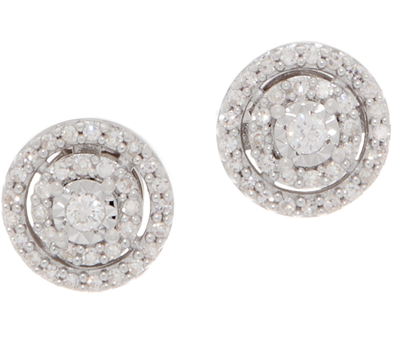 What's more heavenly than a halo of white diamonds? Two of them, of course--like the pair of halos surrounding each of the diamond centers of these Affinity sterling silver earrings. From Affinity® Diamond Jewelry.