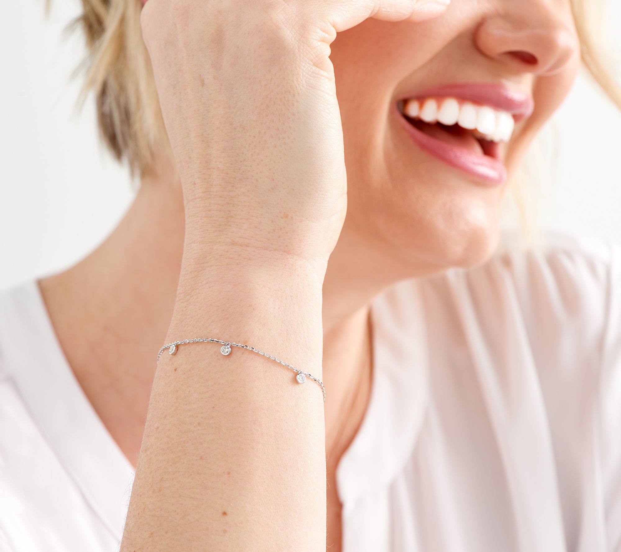 Diamond drop stations add more than a dash of dazzle to this 14K gold bracelet that shimmers with every move you make. Let it give your wardrobe a wow-worthy wakeup call. From Affinity® Diamonds.