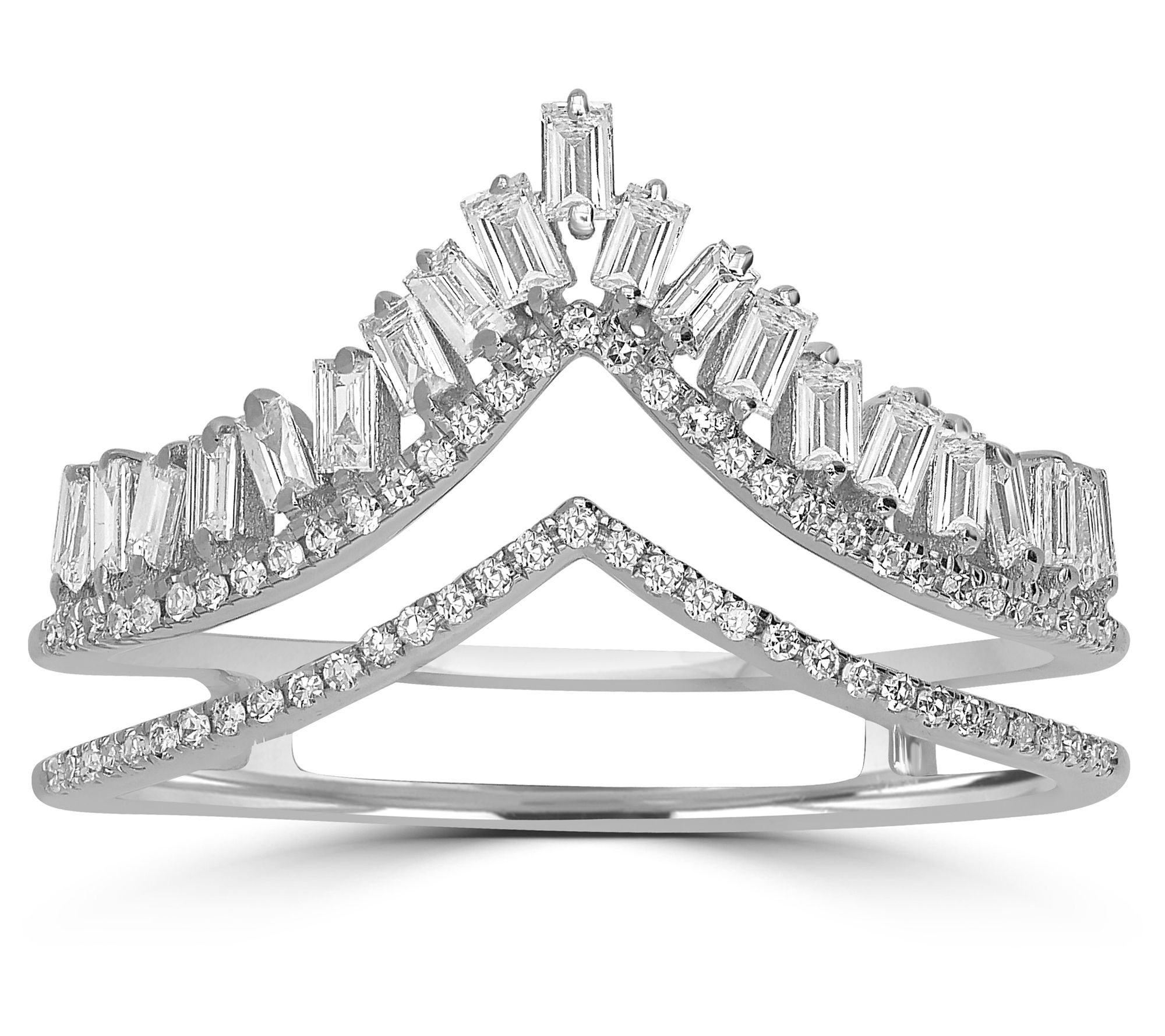 This dazzling ring gives a whole new meaning to "crown jewels." Boasting two rows of glittery diamonds in a regal crown design, it updates your look with luxurious elegance. From Affinity® Diamonds.