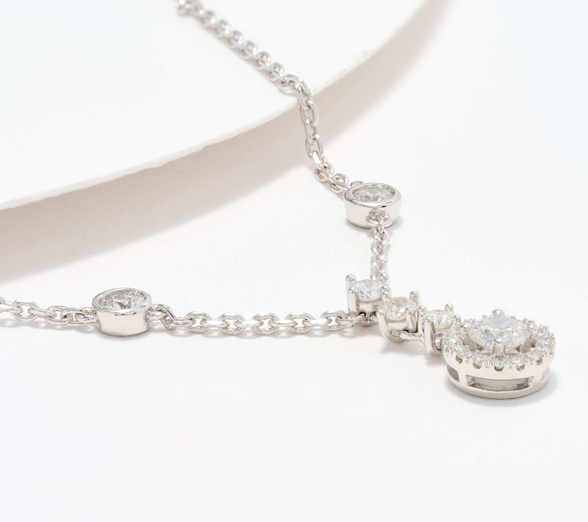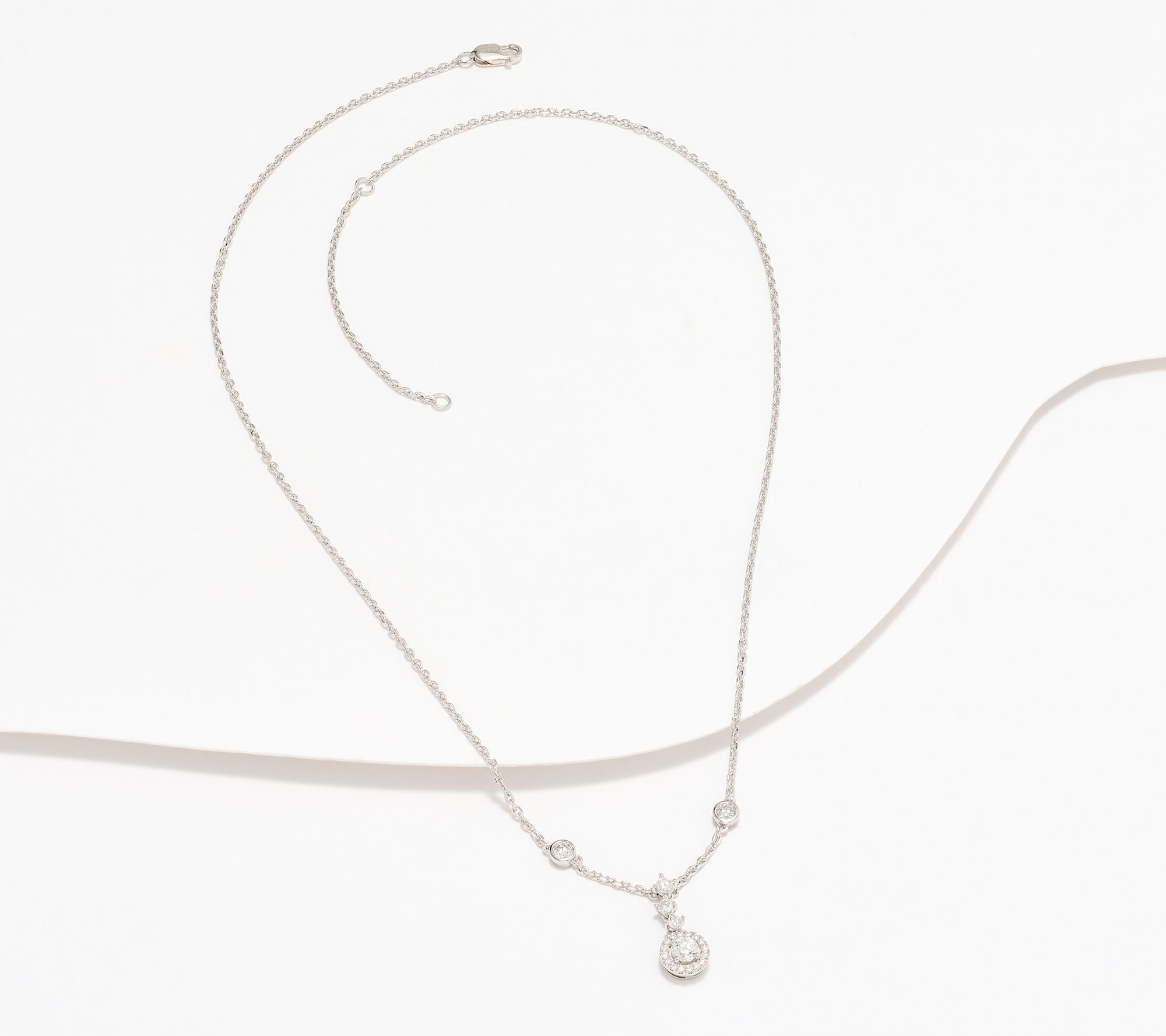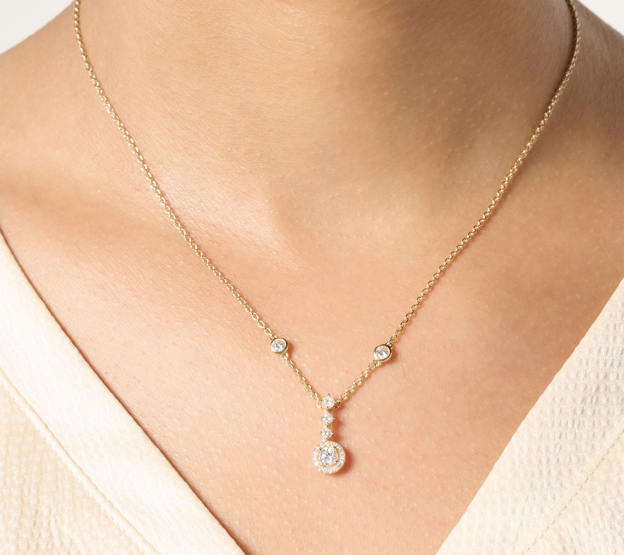 Plain chain... not today! Make every day special when you wear this sparkling diamond necklace. Refined and radiant, it boasts a beautiful drop at its center with round diamonds in a halo design. Let it add a luxurious look to your wardrobe no matter the occasion. From Affinity® Diamond Jewelry.