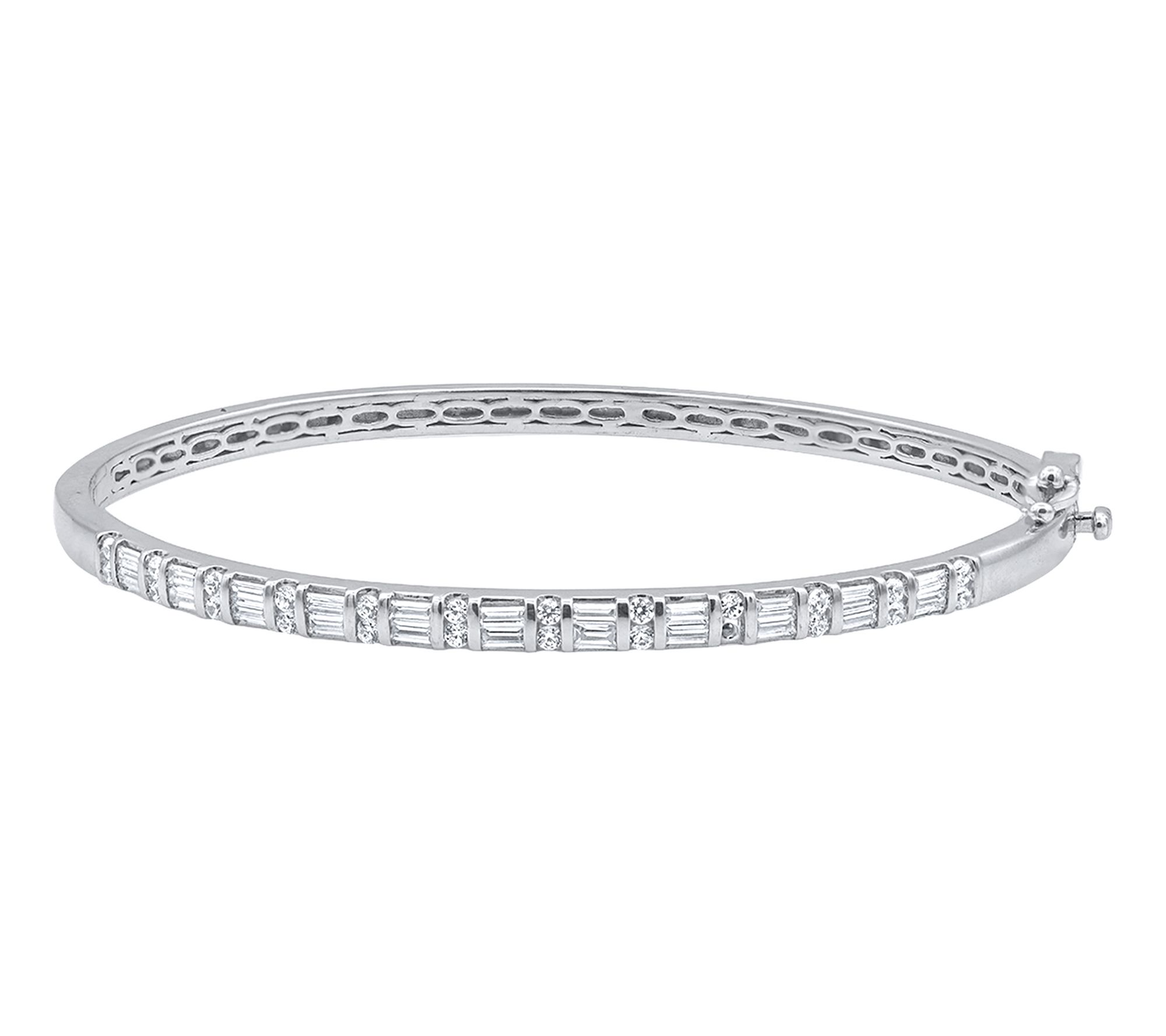 Adorn your wrist with the stunning Affinity Diamonds 1.00 cttw baguette bangle in 14K white gold. This elegant piece features a combination of round and baguette diamonds set in a beautiful channel and tension setting. With this refined bangle, you'll effortlessly add a touch of sophistication to any ensemble. From Affinity Diamonds.