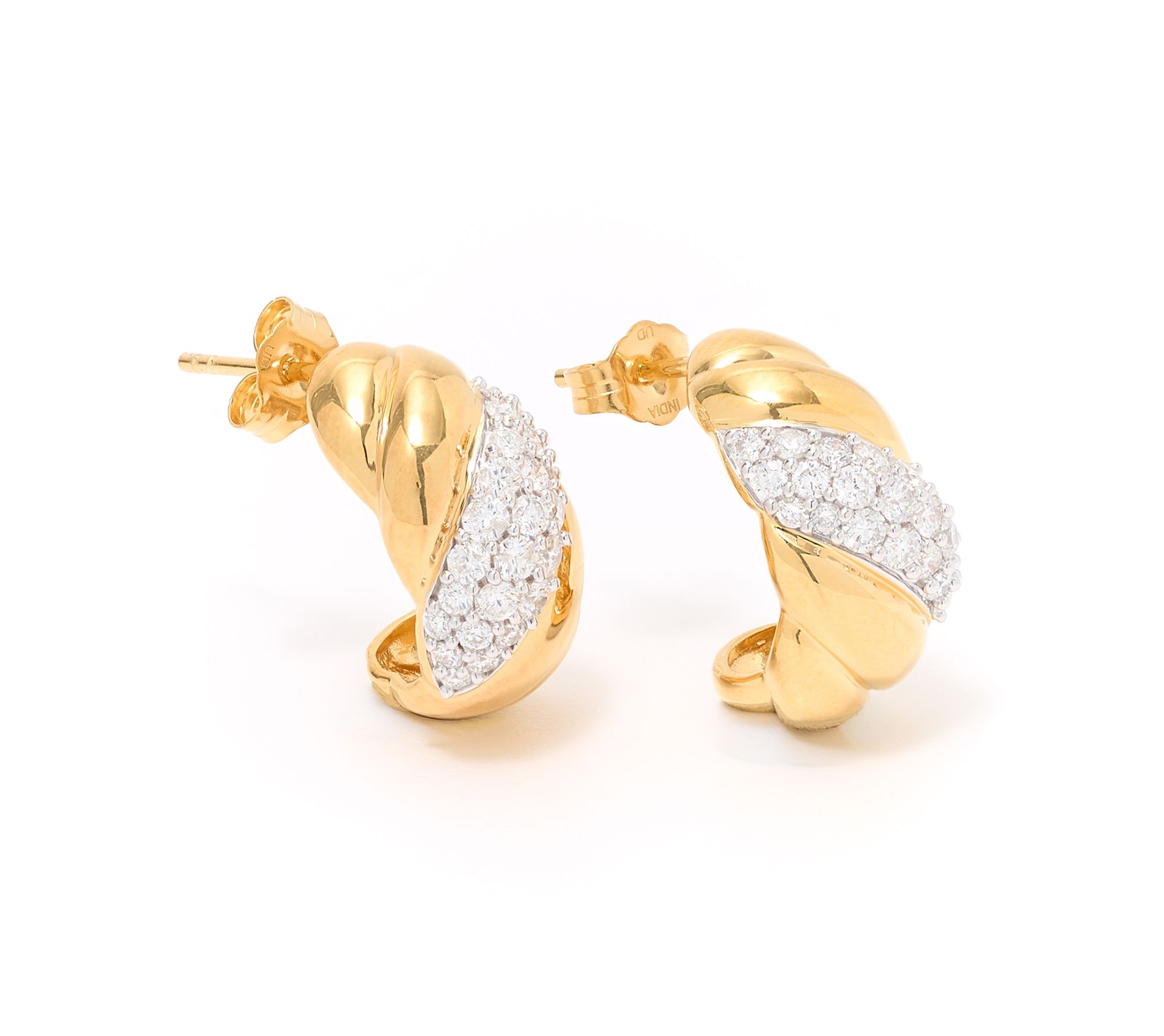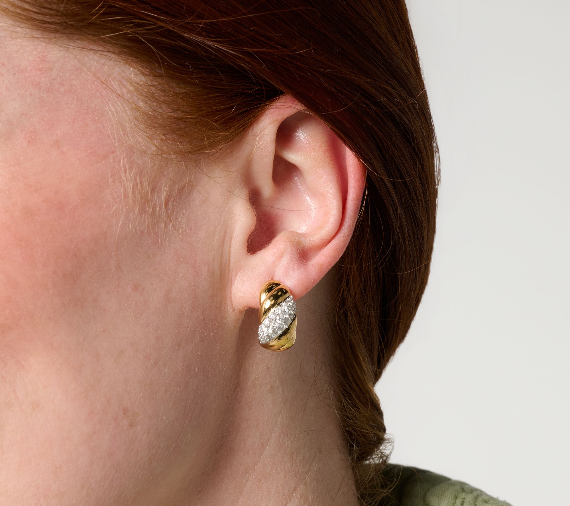 Light dances across every curve of these croissant-inspired earrings, highlighting the fire and sparkle of their round diamonds. Whether dressing up your favorite outfit for a special event or bringing subtle elegance to your daily look, their sculpted design offers a head-turning finishing touch. From Affinity® Diamonds.