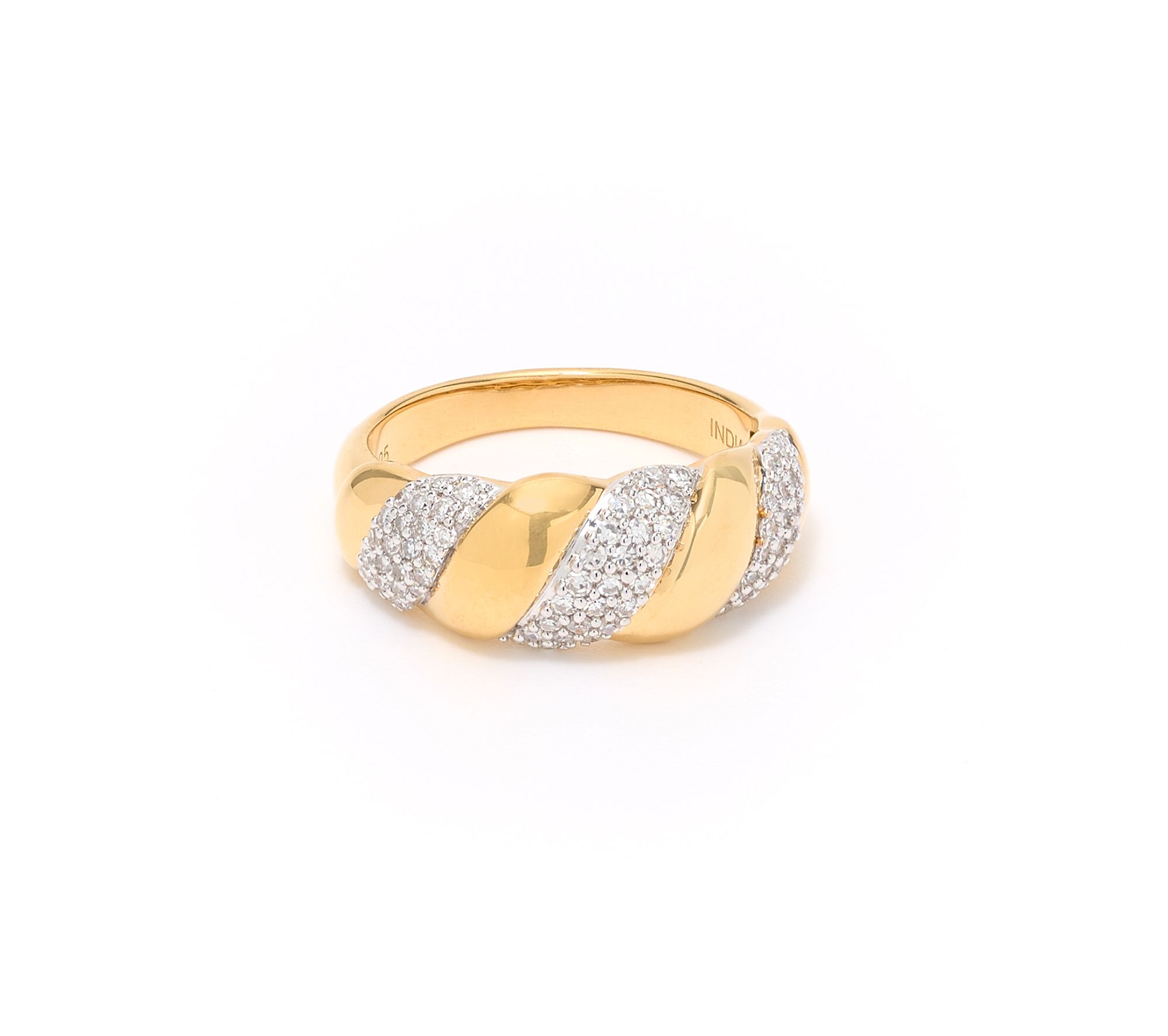 Slip on this croissant detail ring and let your style shine, whether you're heading to brunch with friends or dressing up for date night. The subtle sparkle of diamonds brings a sophisticated glow, while the sculpted sterling silver wraps your finger in a chic, modern silhouette. From Affinity® Diamonds.