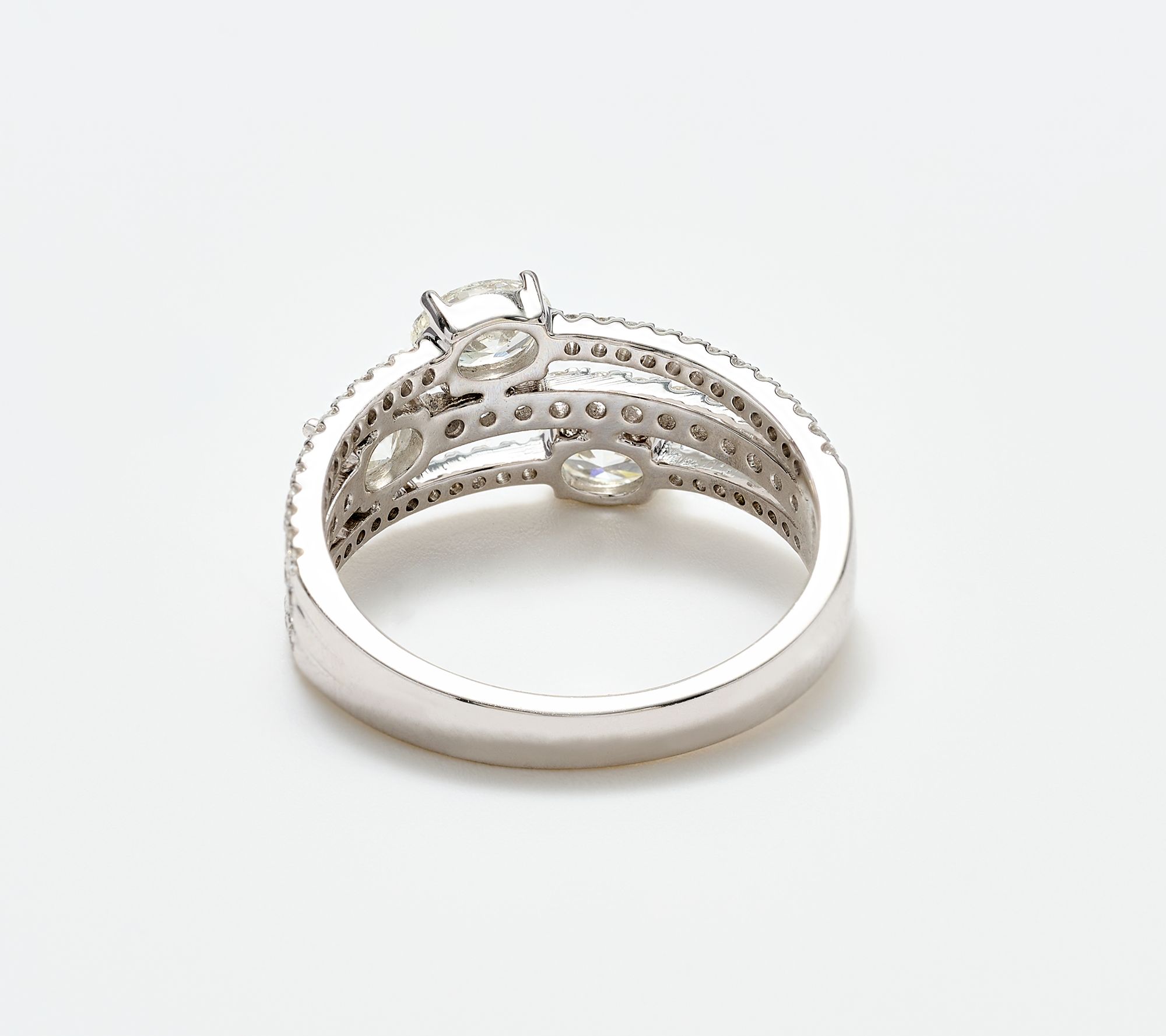 Three-tier oval and round diamond design; east-west setting