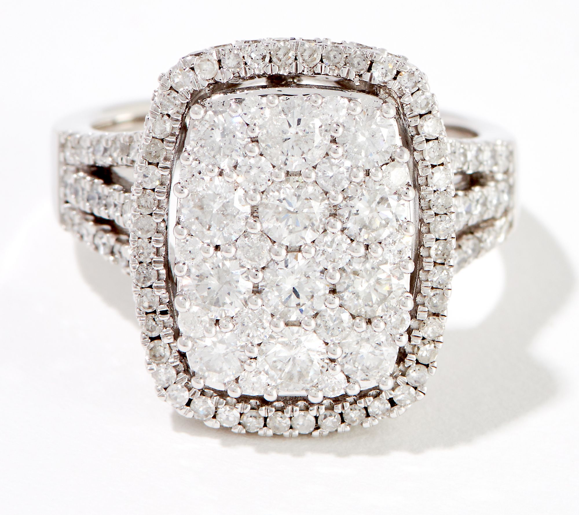 Allow us to congratulate you! This swoon-worthy ring -- with a cluster of diamonds for a very grand effect -- is so perfect for wedding, commitment, or anniversary celebrations. From Affinity® Diamonds.