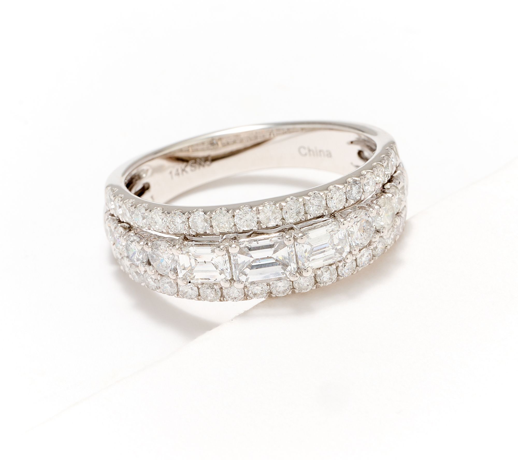 Bring the bling (and then some!) with this diamond-dazzled band ring -- complete with emerald-cut and round brilliant-cut stones. From Affinity® Diamonds.