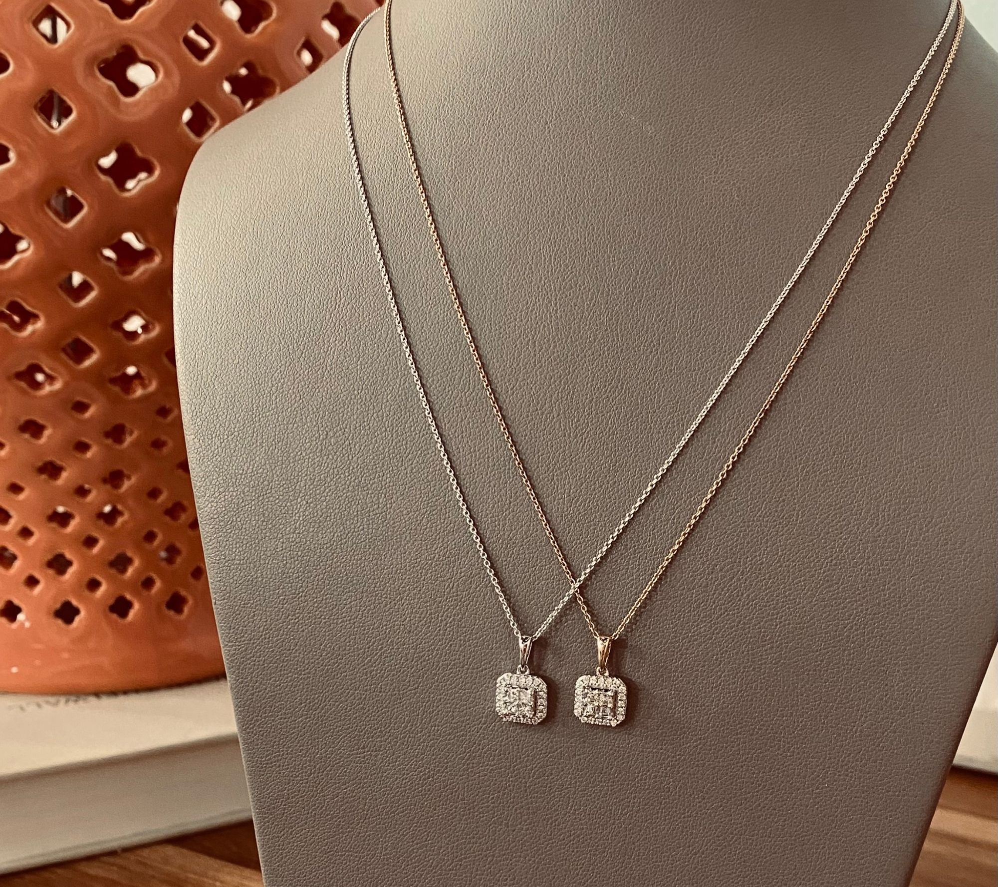- Round-, princess-, brilliant-, and single-cut diamonds; polished finish