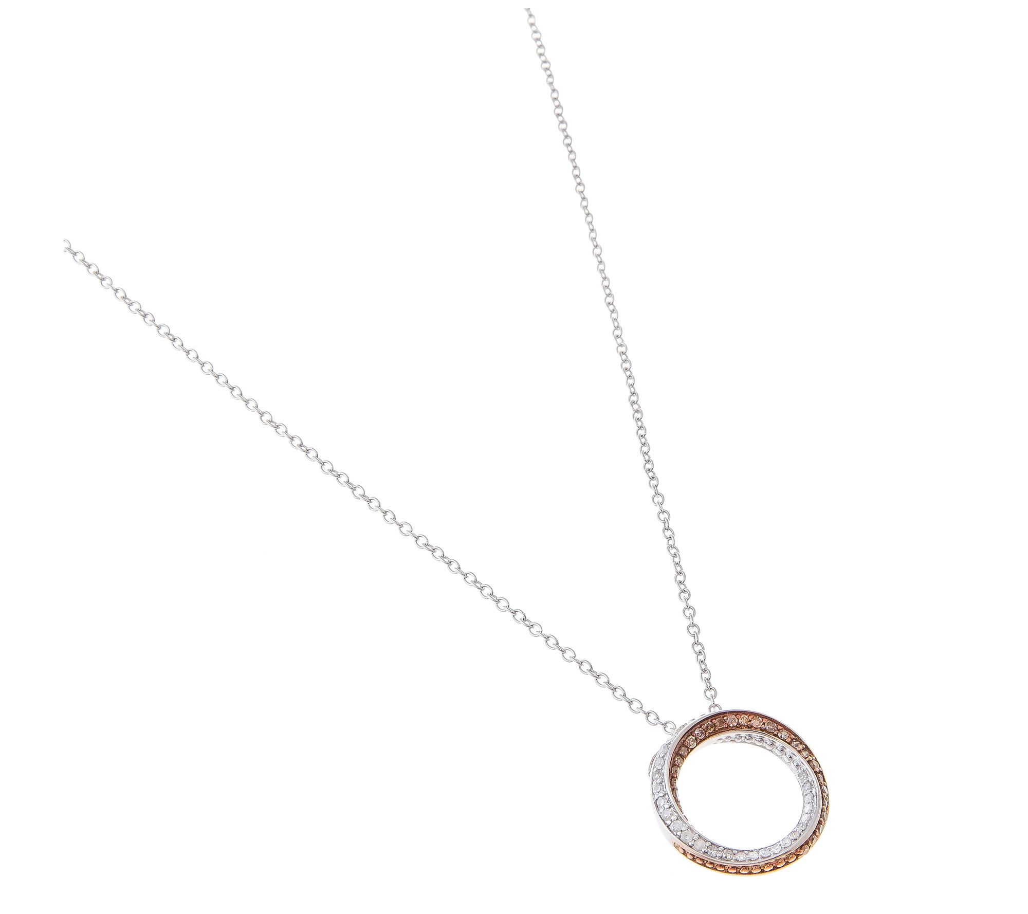 A dazzling accent for both everyday and special occasions, this two-tone circle pendant sparkles with round-cut diamonds that catch the light from every angle. The elegant two-tone design adds versatile charm, making it an ideal piece to wear solo or layer with other necklaces. From Affinity® Diamonds.