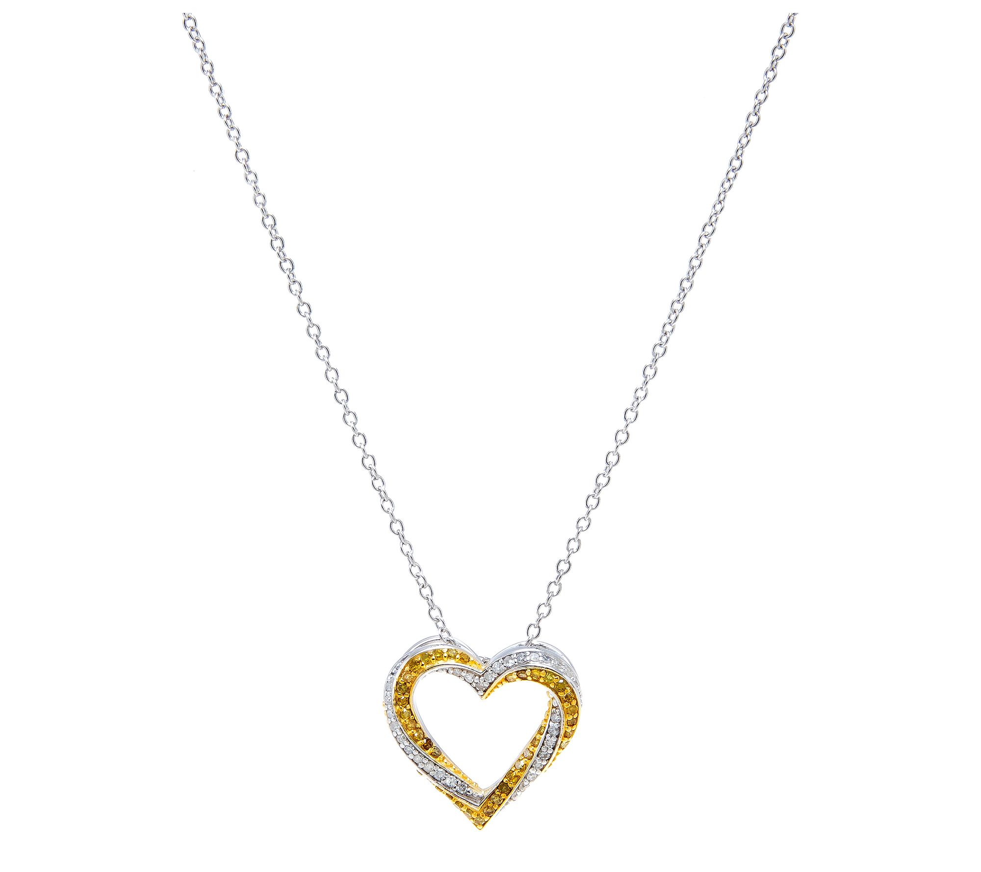 A swirl of shimmer and color brings a heartfelt accent to your neckline with this diamond heart necklace -- just right for adding a hint of romance to date nights, brunch, or everyday outings. Delicate rounds of diamonds catch the light as you move, set in a graceful two-tone heart on a versatile cable chain. From Affinity® Diamonds.