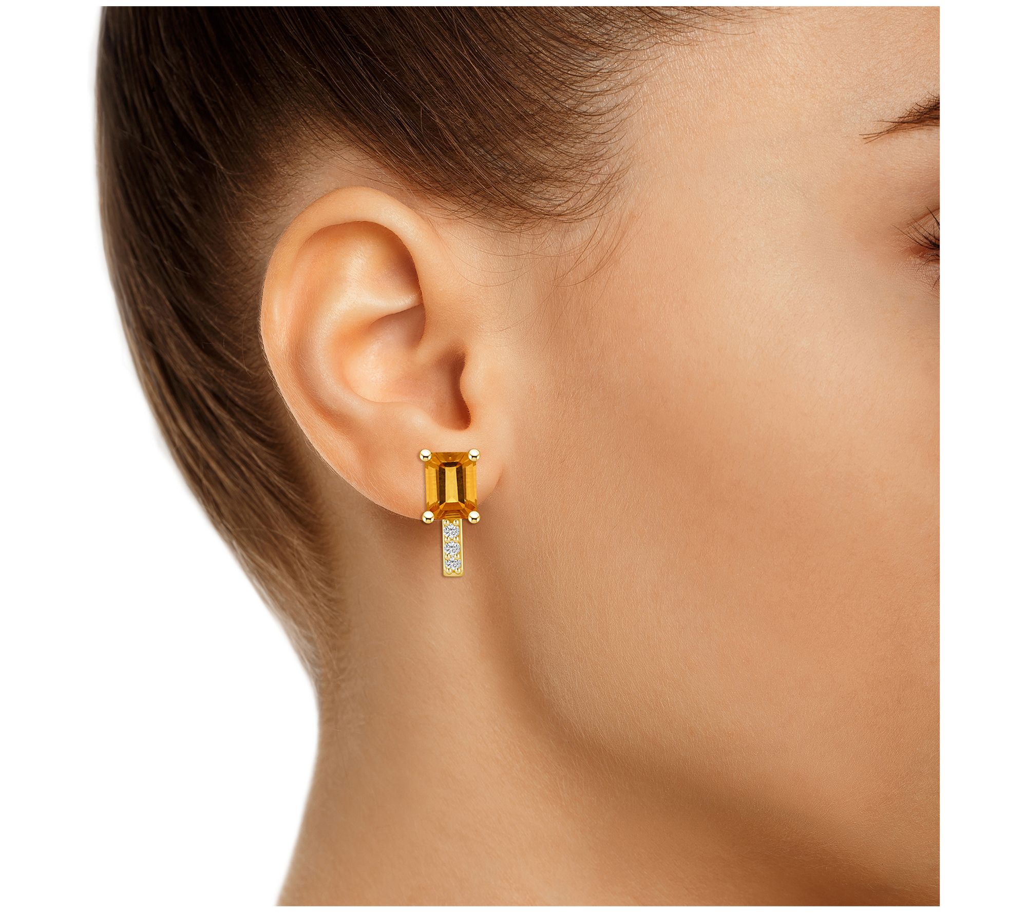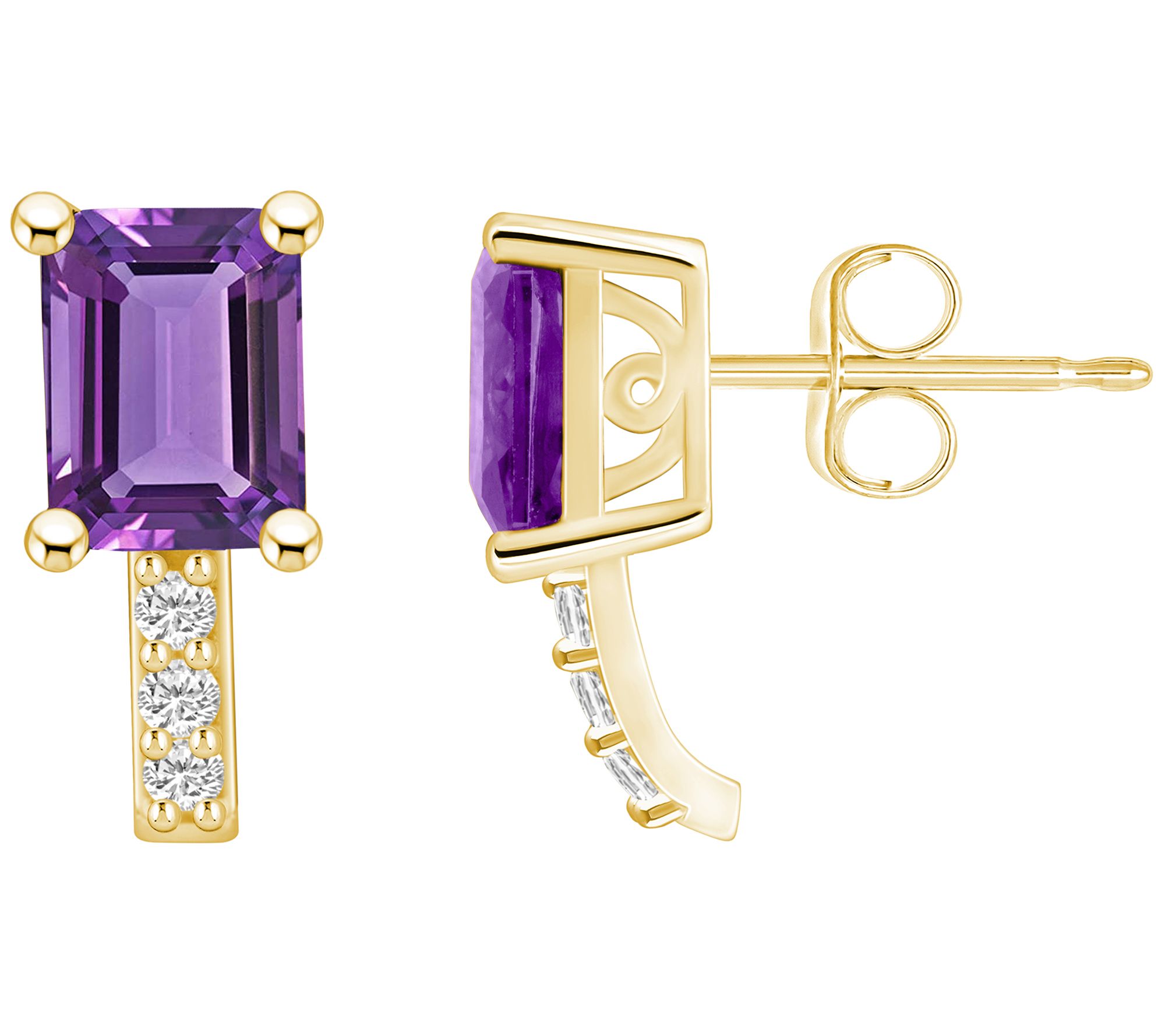 Line up the glamour with the dazzling sparkle of these gemstone earrings that are beautifully accented with white diamonds in a vertical alignment. From Affinity Gems.