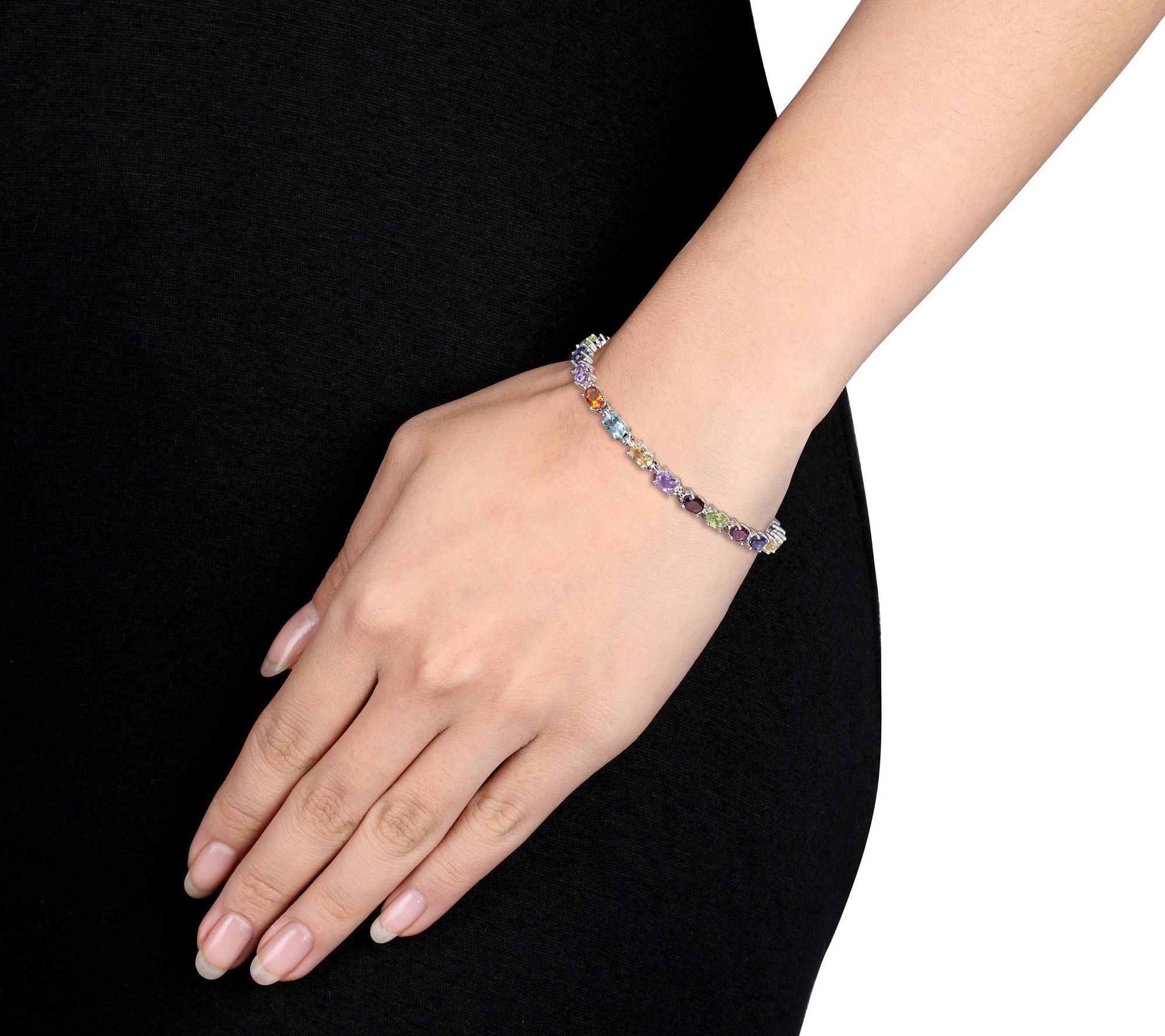 Color your world with this dazzling, multi-colored gemstone tennis bracelet crafted from sterling silver. From Affinity Gems.