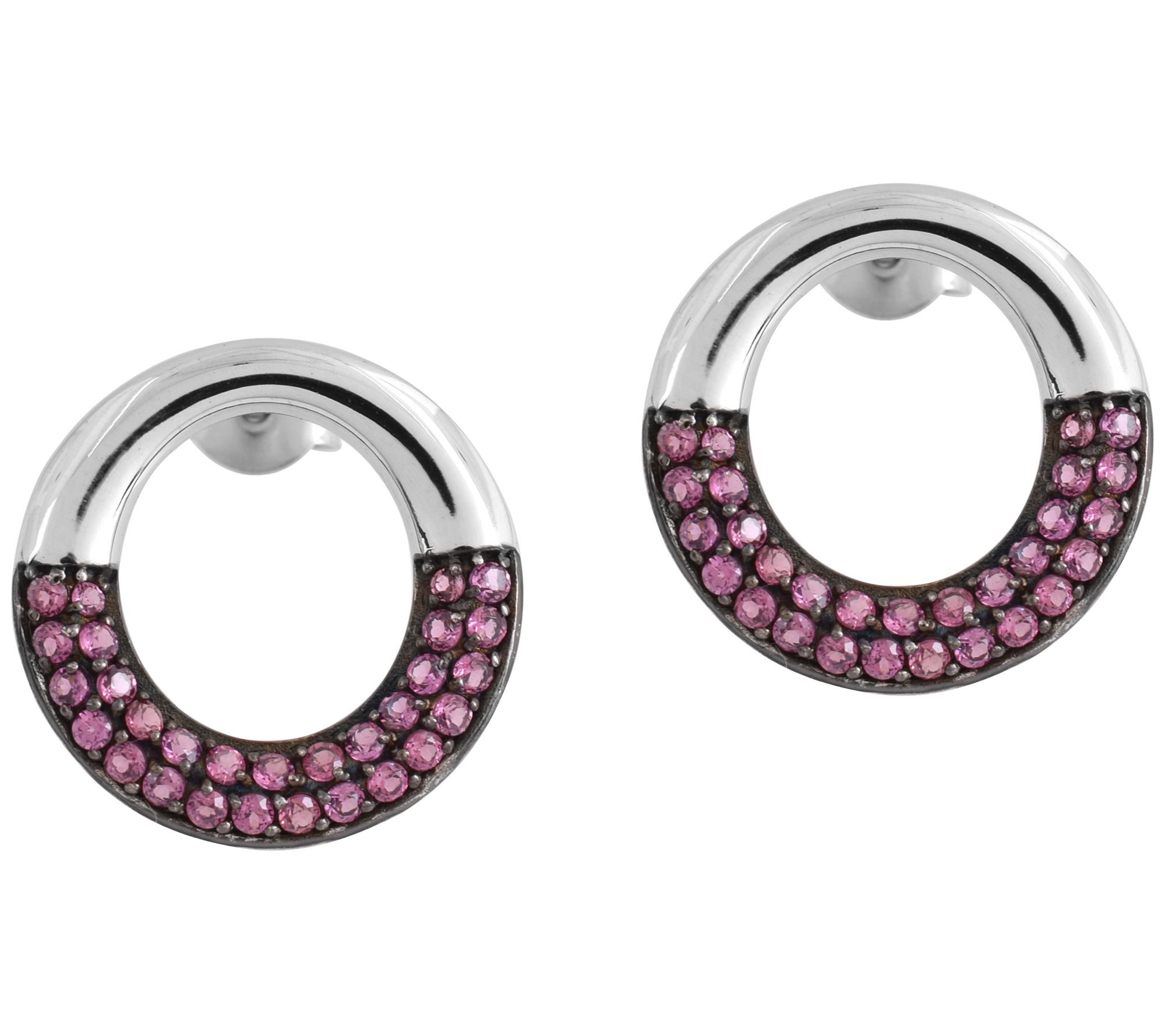 A hint of color and a ton of sparkle! These chic circle earrings are topped with rows of glittery rhodolite to put a glam finish on any look. From Affinity® Gems.