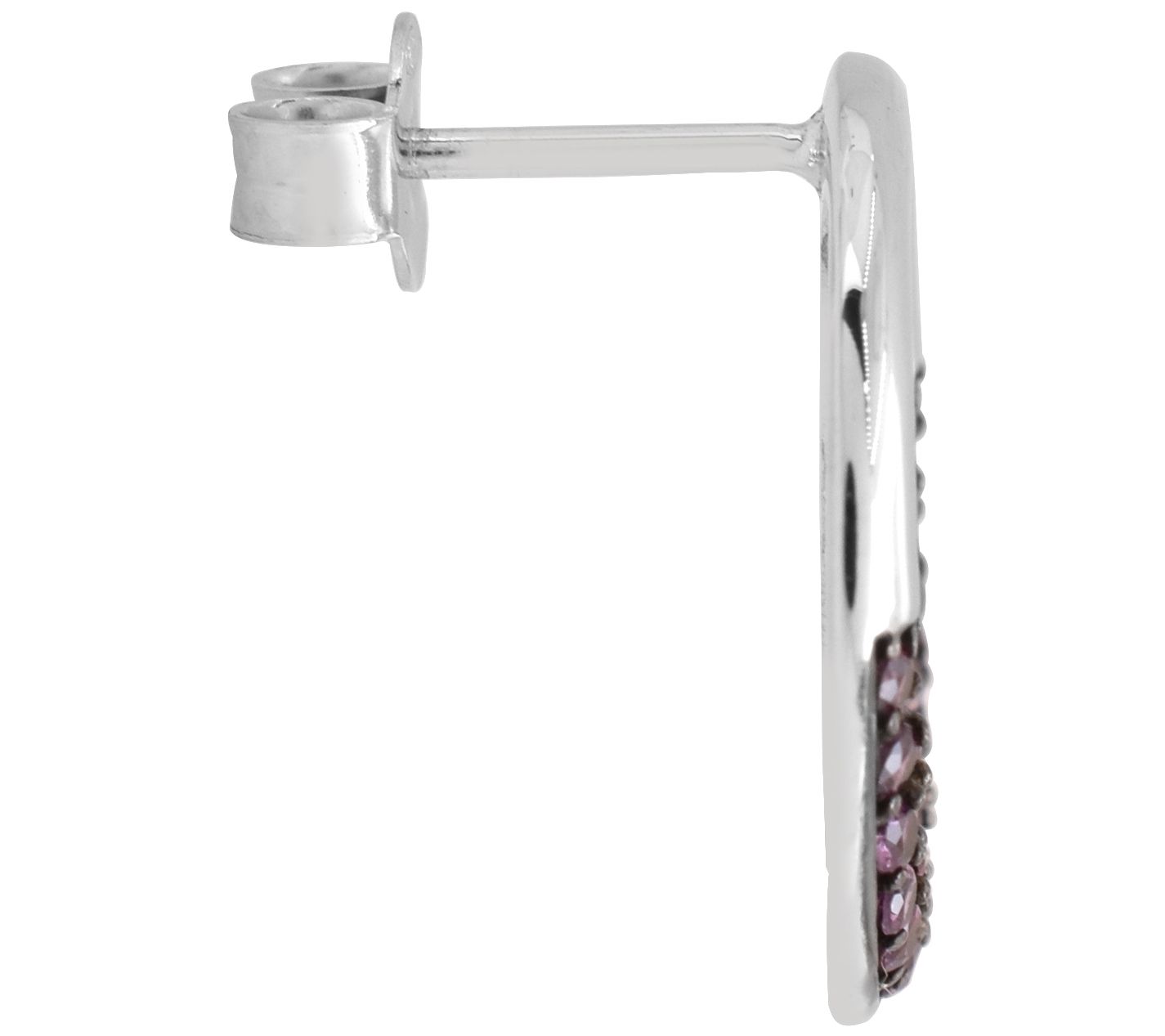 • Stud earrings with round-cut , prong-set rhodolite gemstones