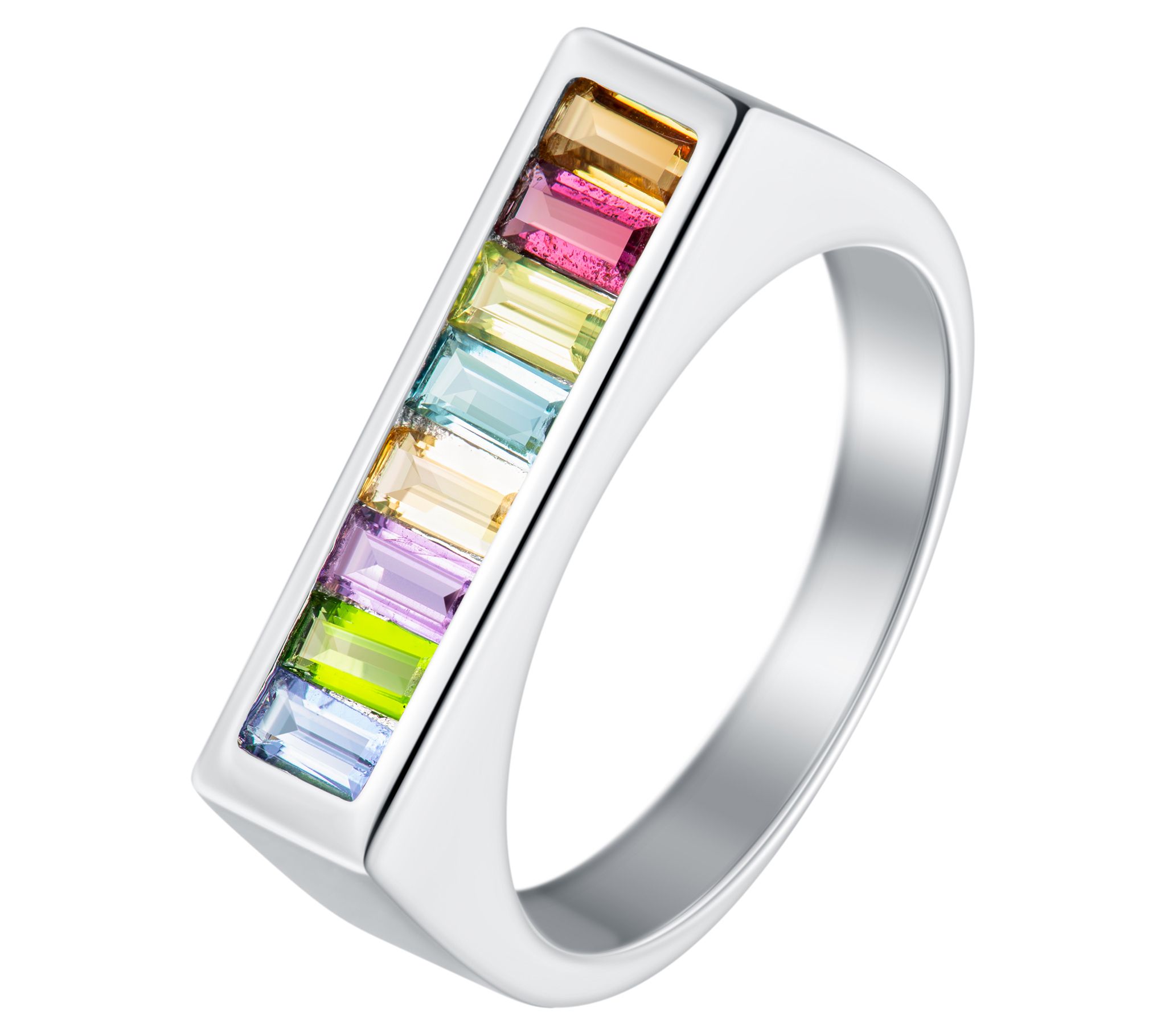Feeling colorful? This sterling silver ring features a fabulous channel of multicolored gemstones, ready to add a pop of personality to any ensemble. From Affinity® Gems.