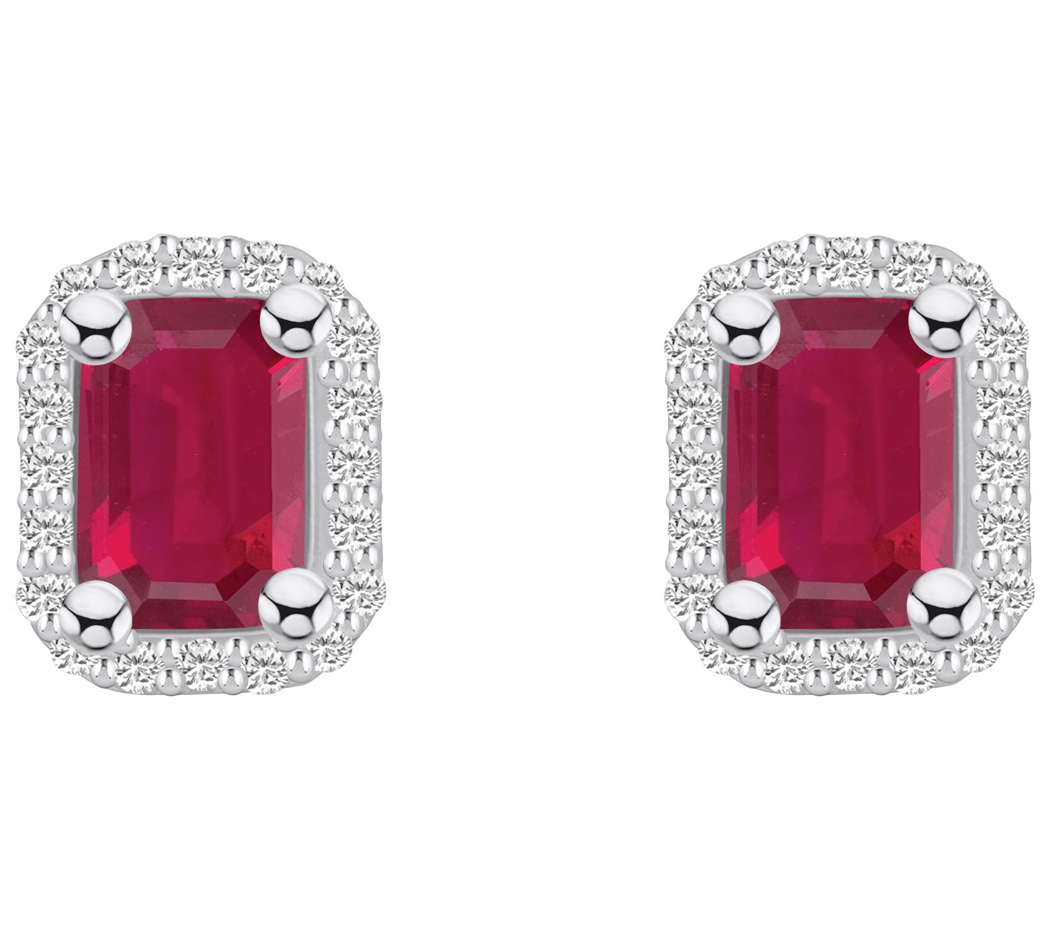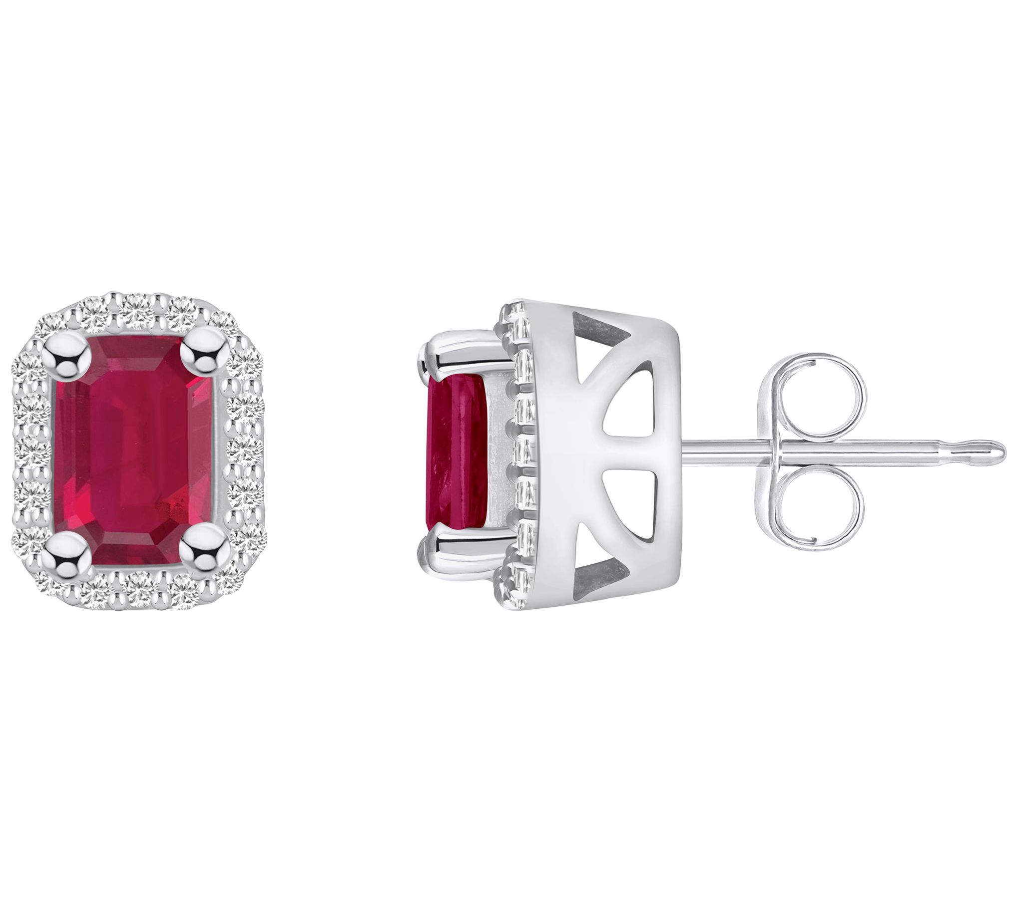With dazzling diamonds cradling an emerald-cut ruby, these 14K yellow or white gold stud earrings add pizzazz to your outfit. From Affinity® Gems.