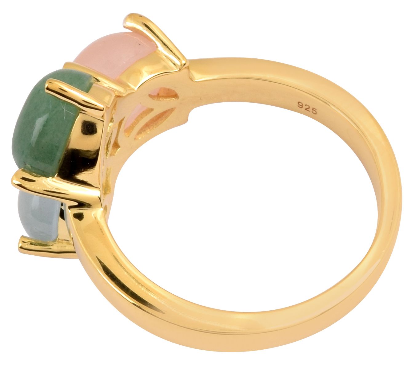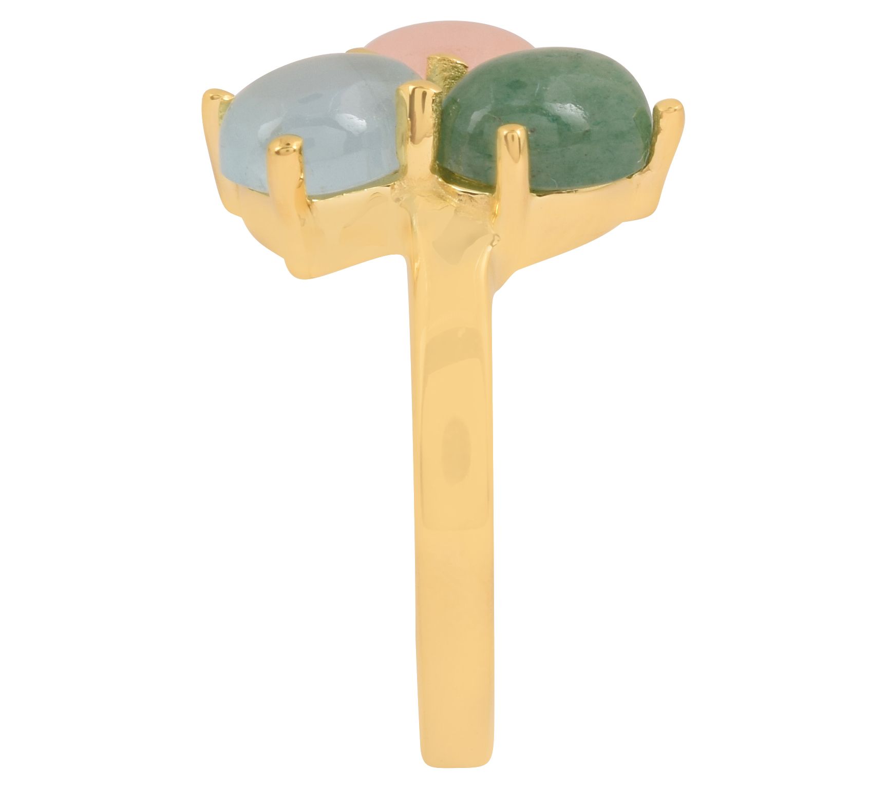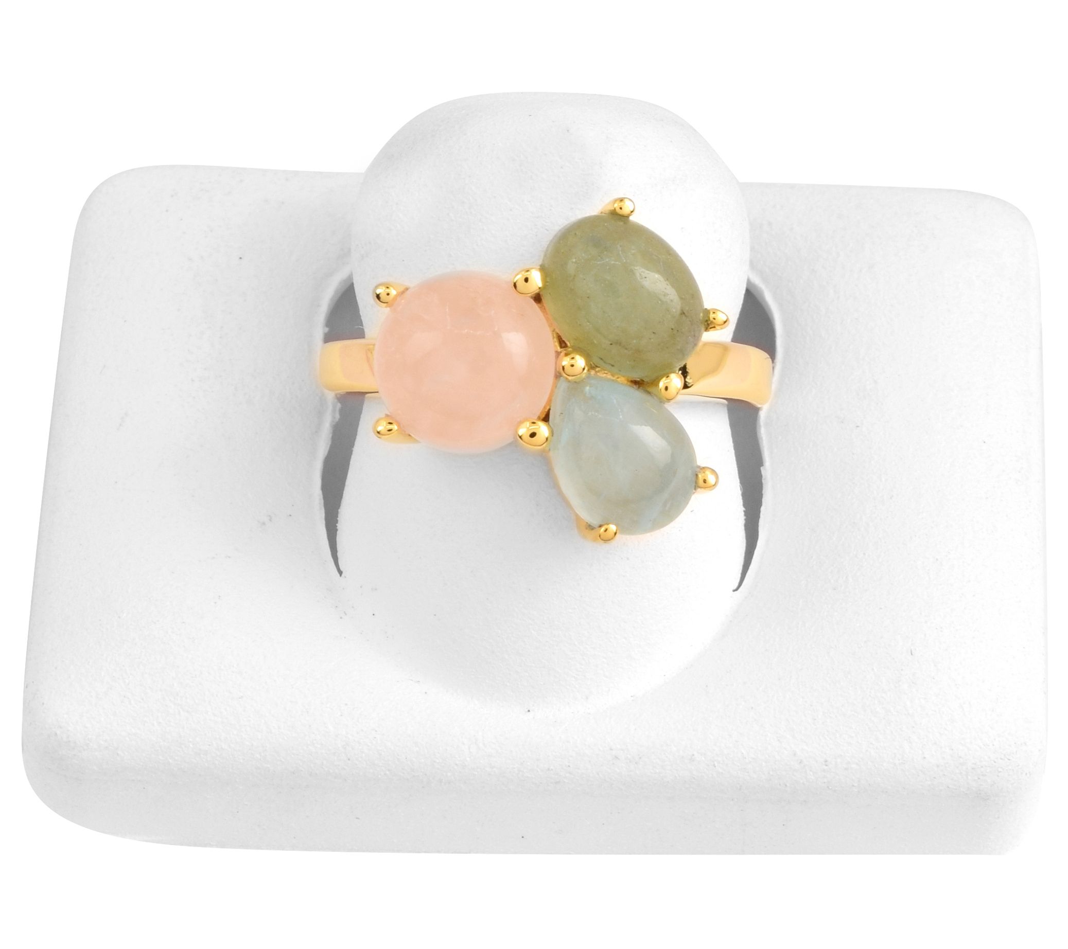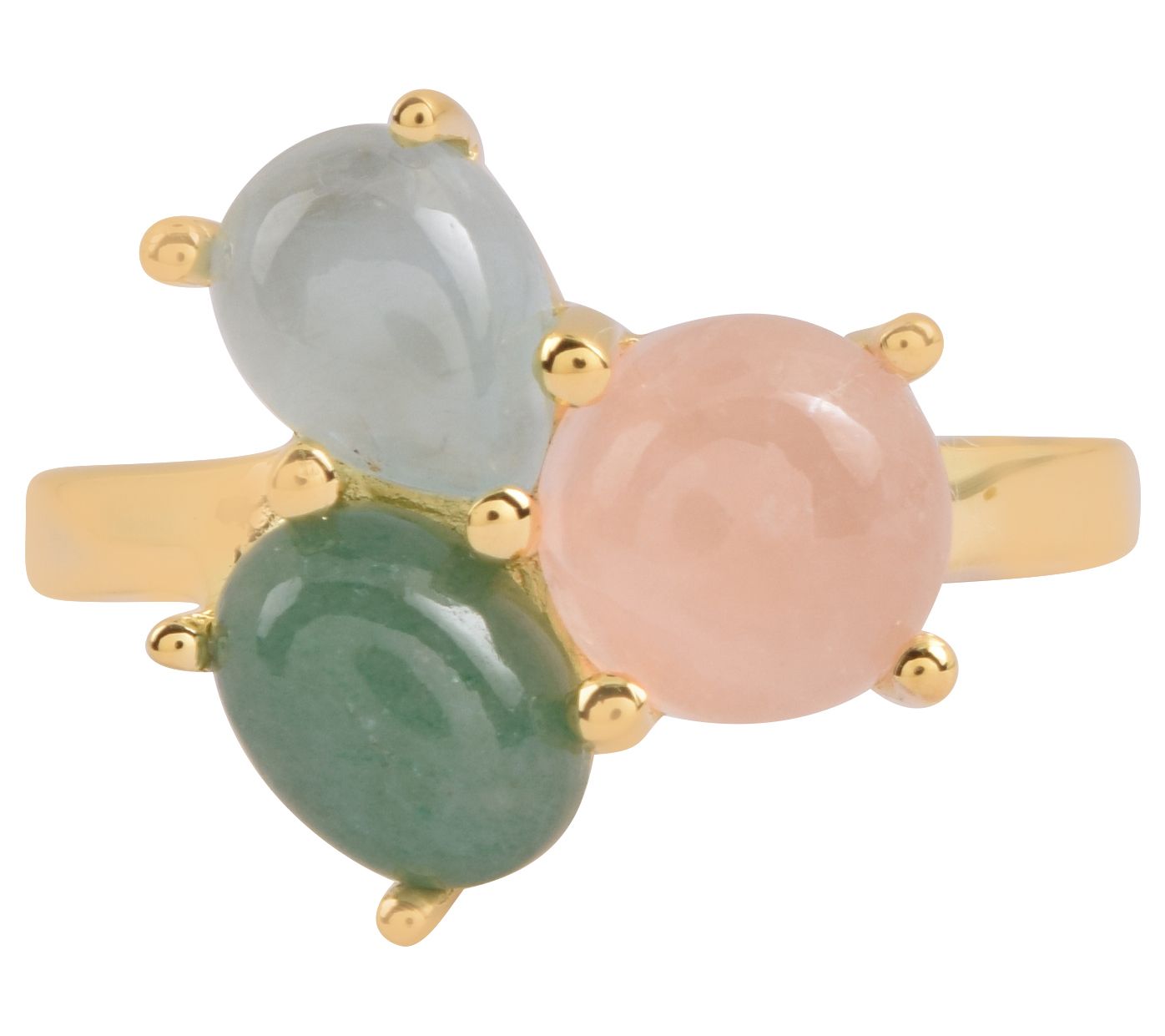 Add a pop of color and chic style to your wardrobe with this fun multi-stone ring, featuring blue milky aquamarine, green aventurine, and rose quartz.