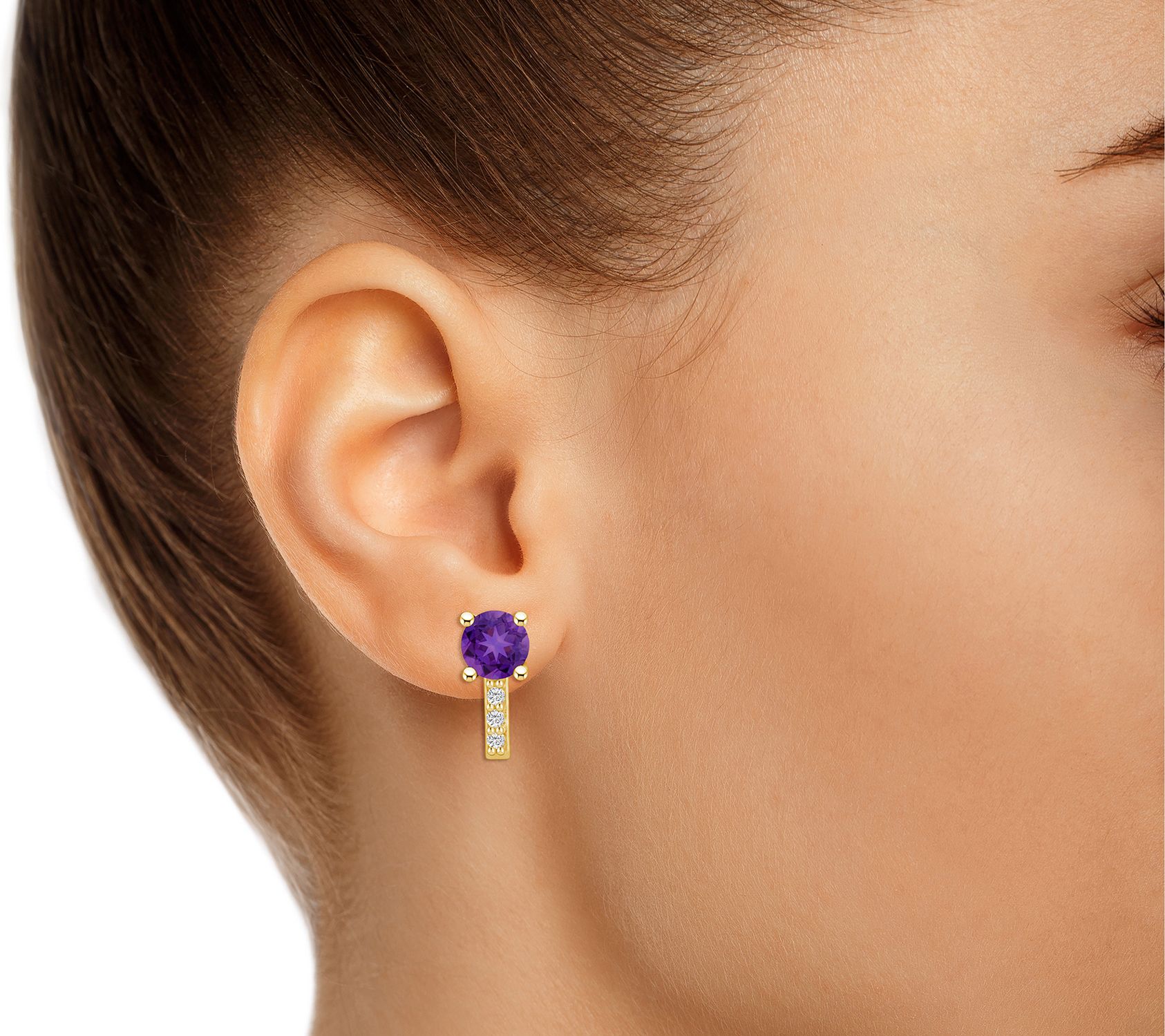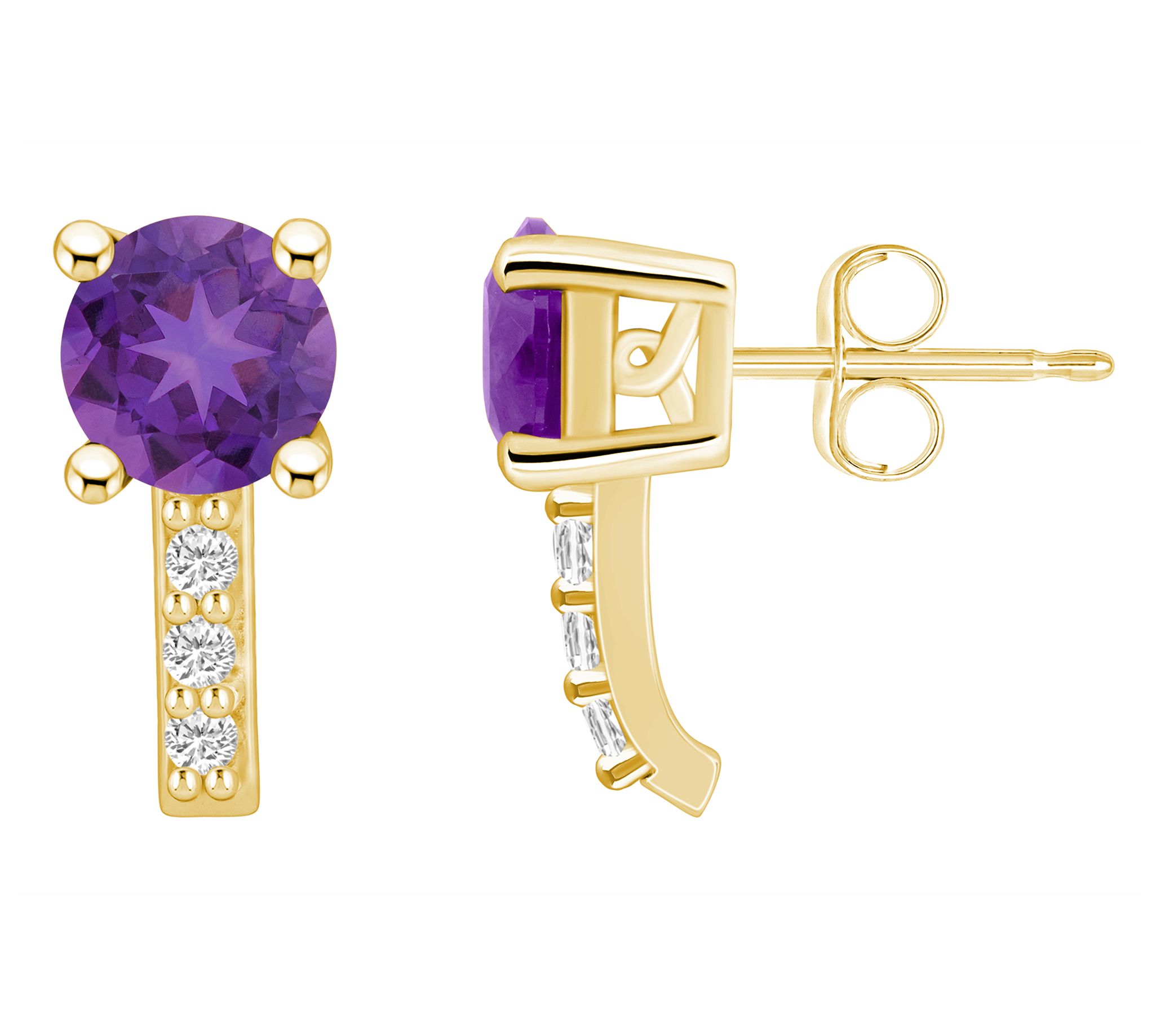 Line up the glamour with the dazzling sparkle of these gemstone earrings that are beautifully accented with white diamonds in a vertical alignment. From Affinity Gems.
