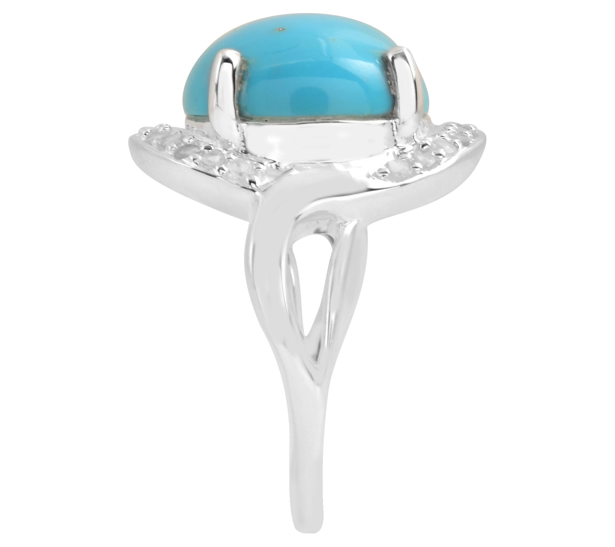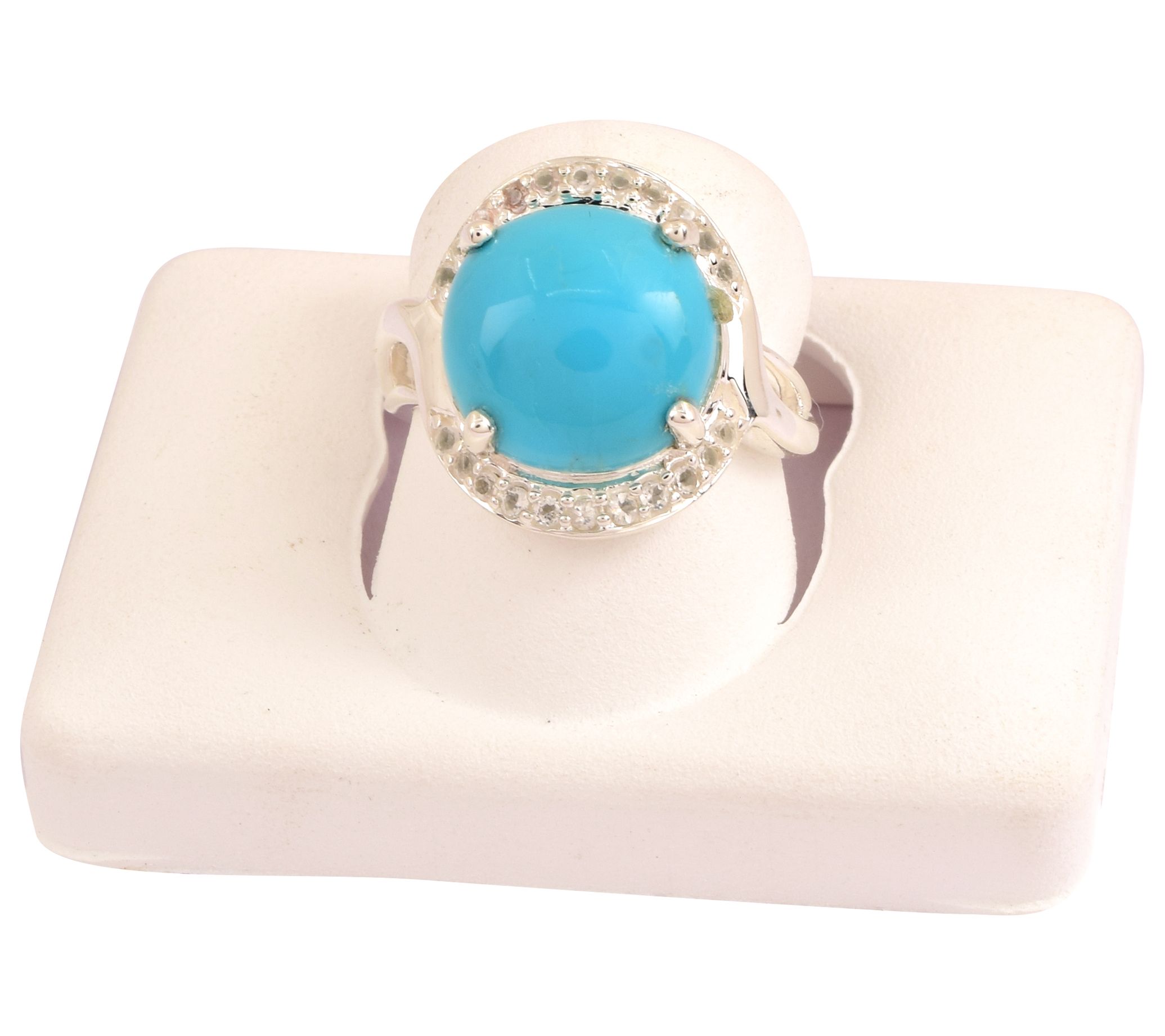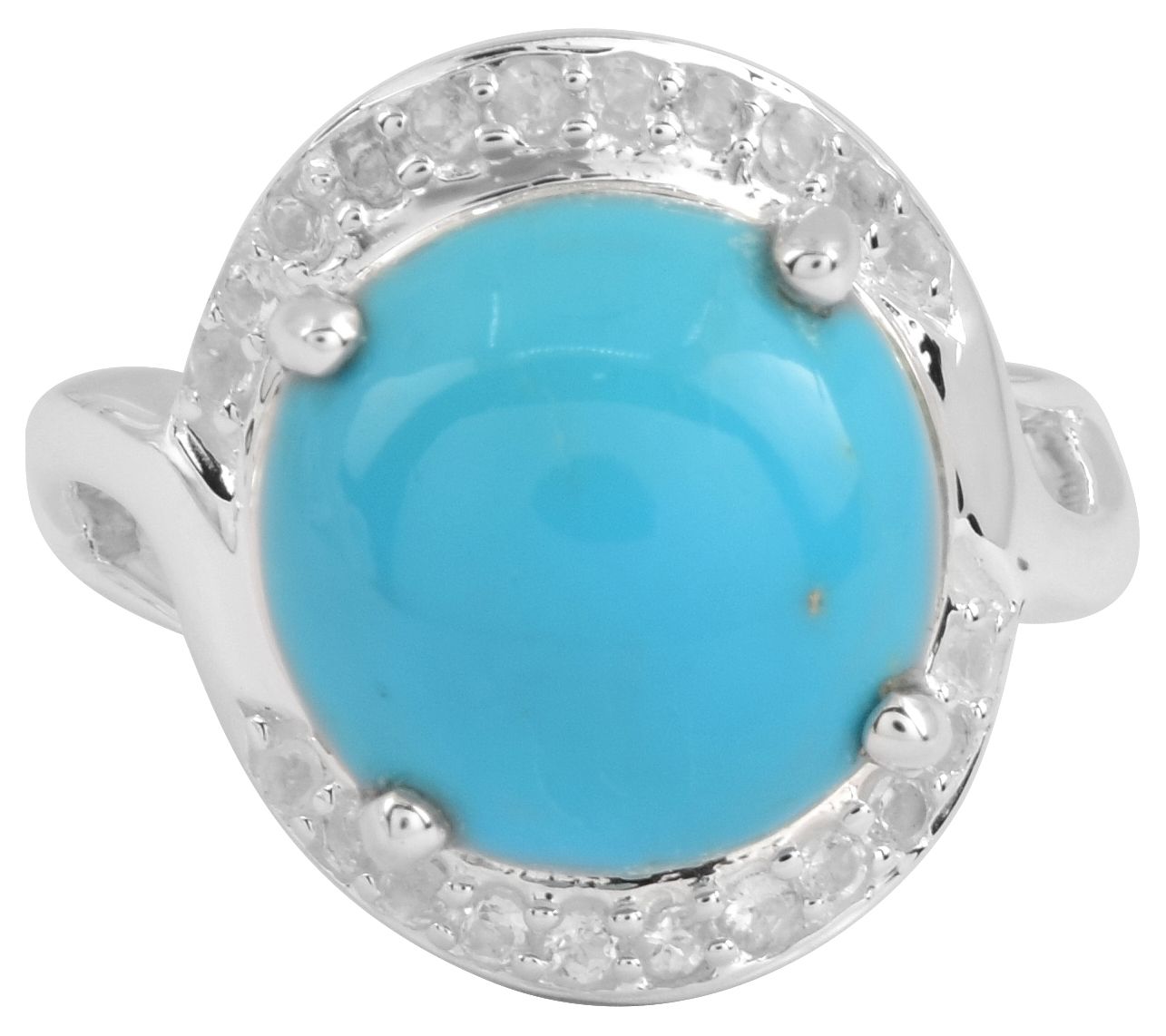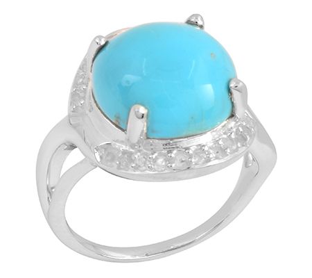 Prong-set, round turquoise surrounded by prong-set white topaz