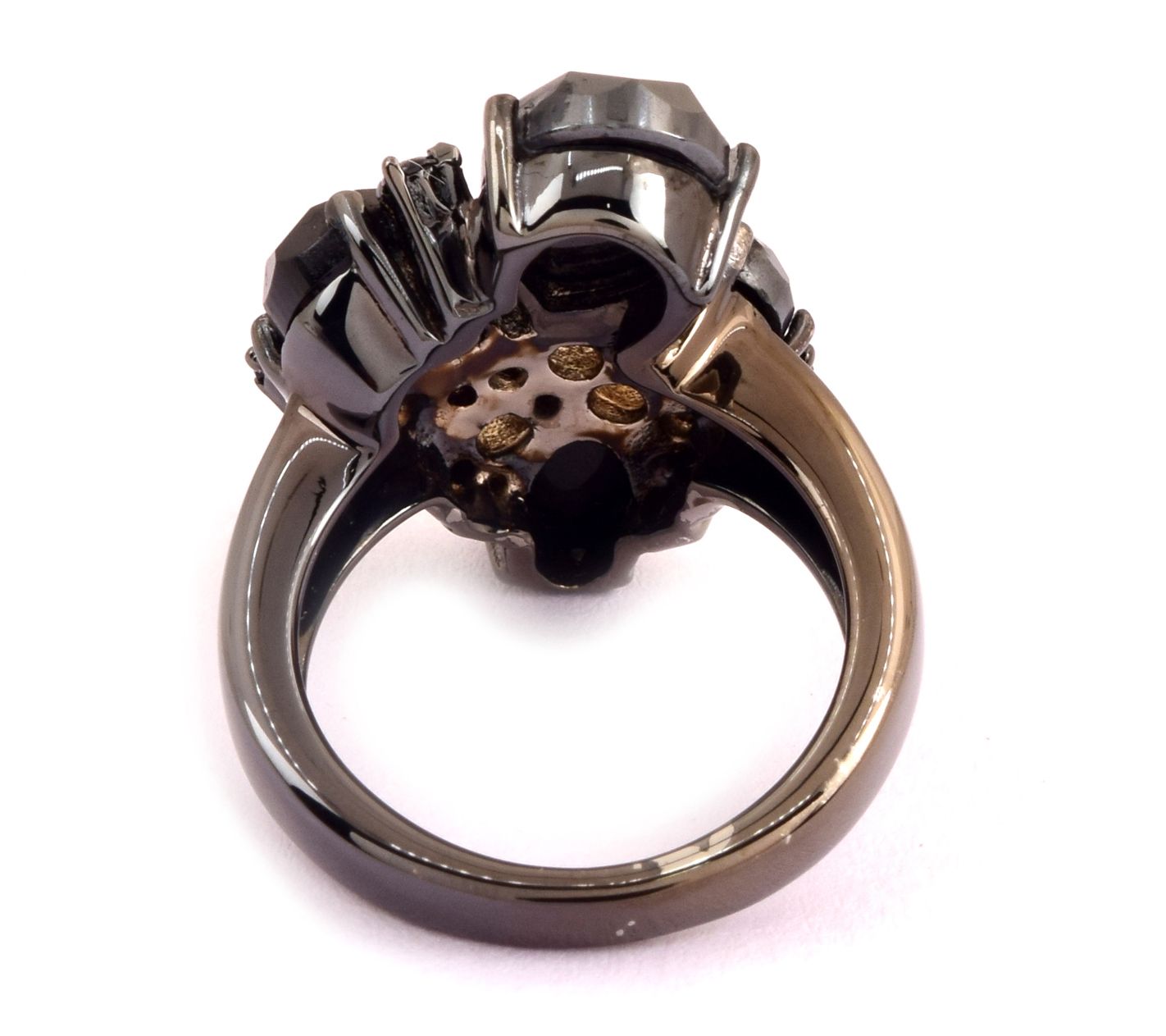 The combination of hematite, black spinel, and white topaz gemstones on this cluster ring makes a stunning style statement. From Affinity® Fine Jewelry.