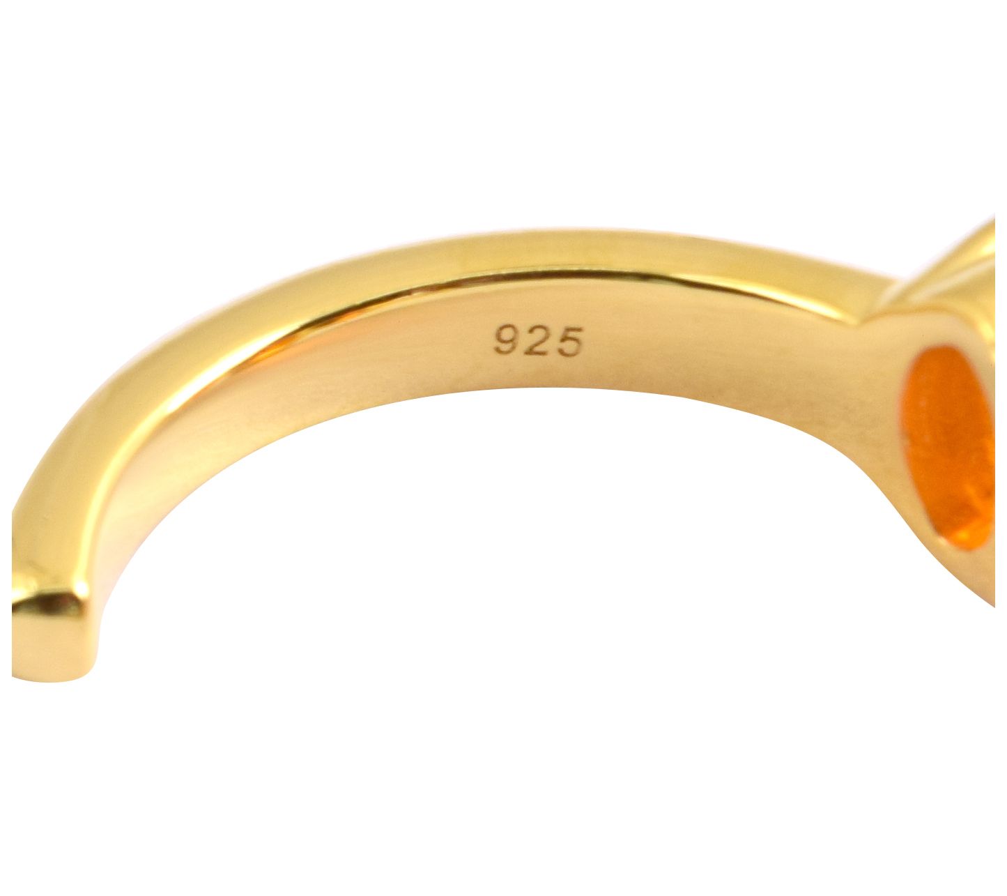 • Hoop earrings with oval-cut, prong-set amber cabochons; polished finish