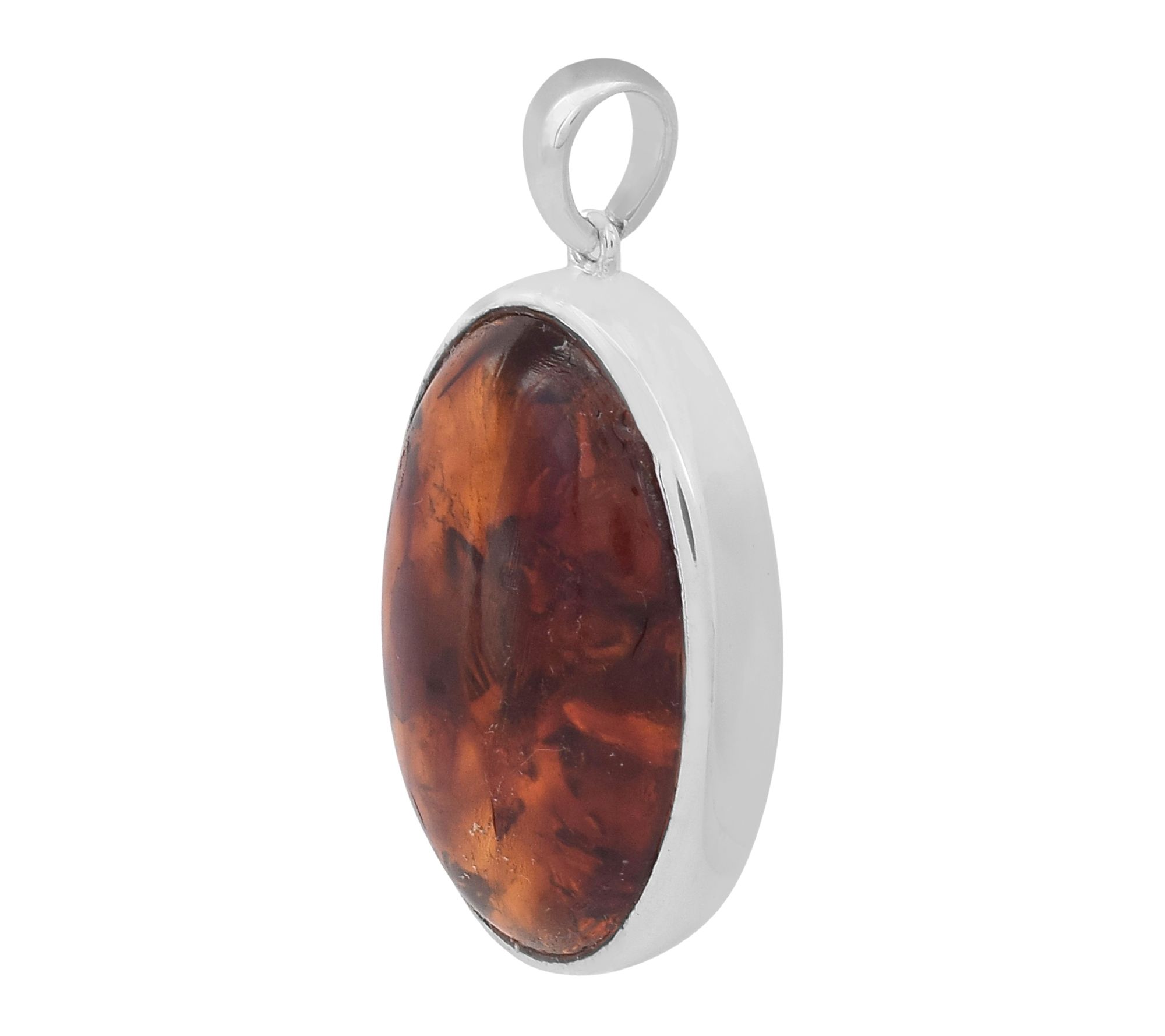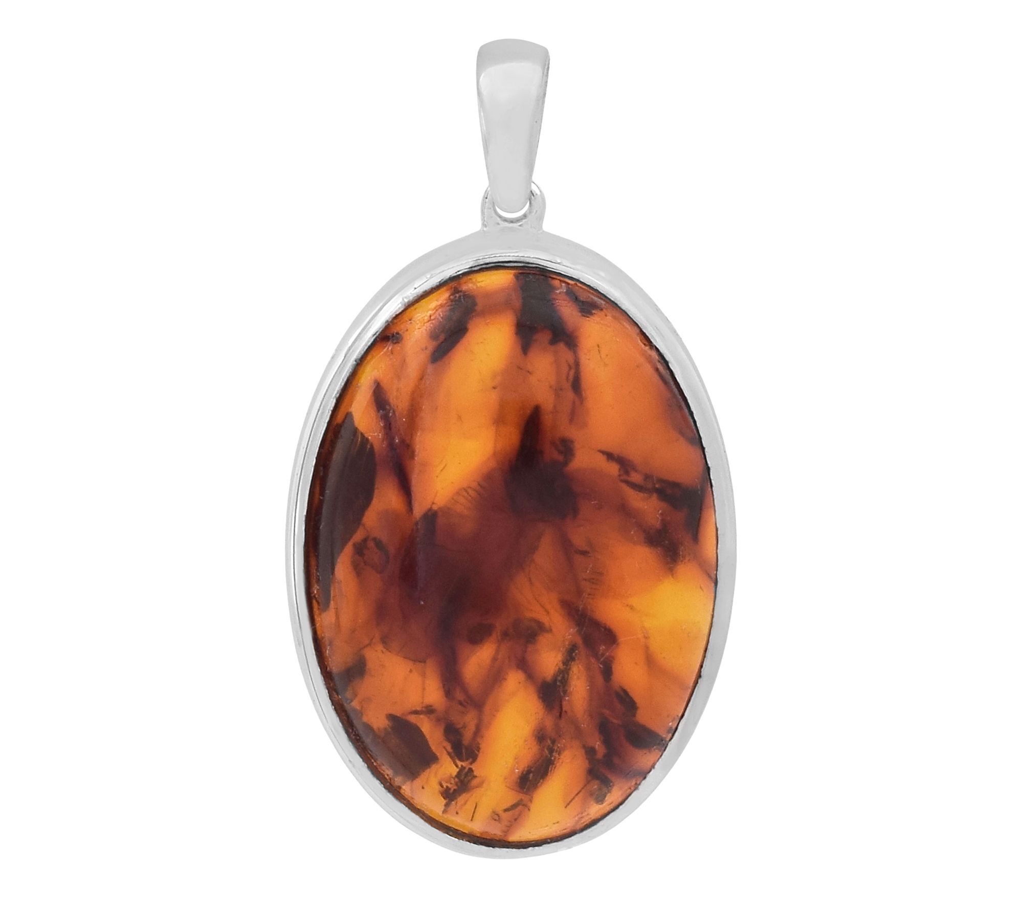 Golden hues of amber shimmer in this solitaire pendant, adding a warm touch to your day or evening look. This oval cabochon design features a smooth, bezel-set gemstone for a polished finish that effortlessly highlights any neckline. Style it solo or pair it with your favorite chain for a pop of orange that makes every occasion a bit brighter. From Affinity® Gems.