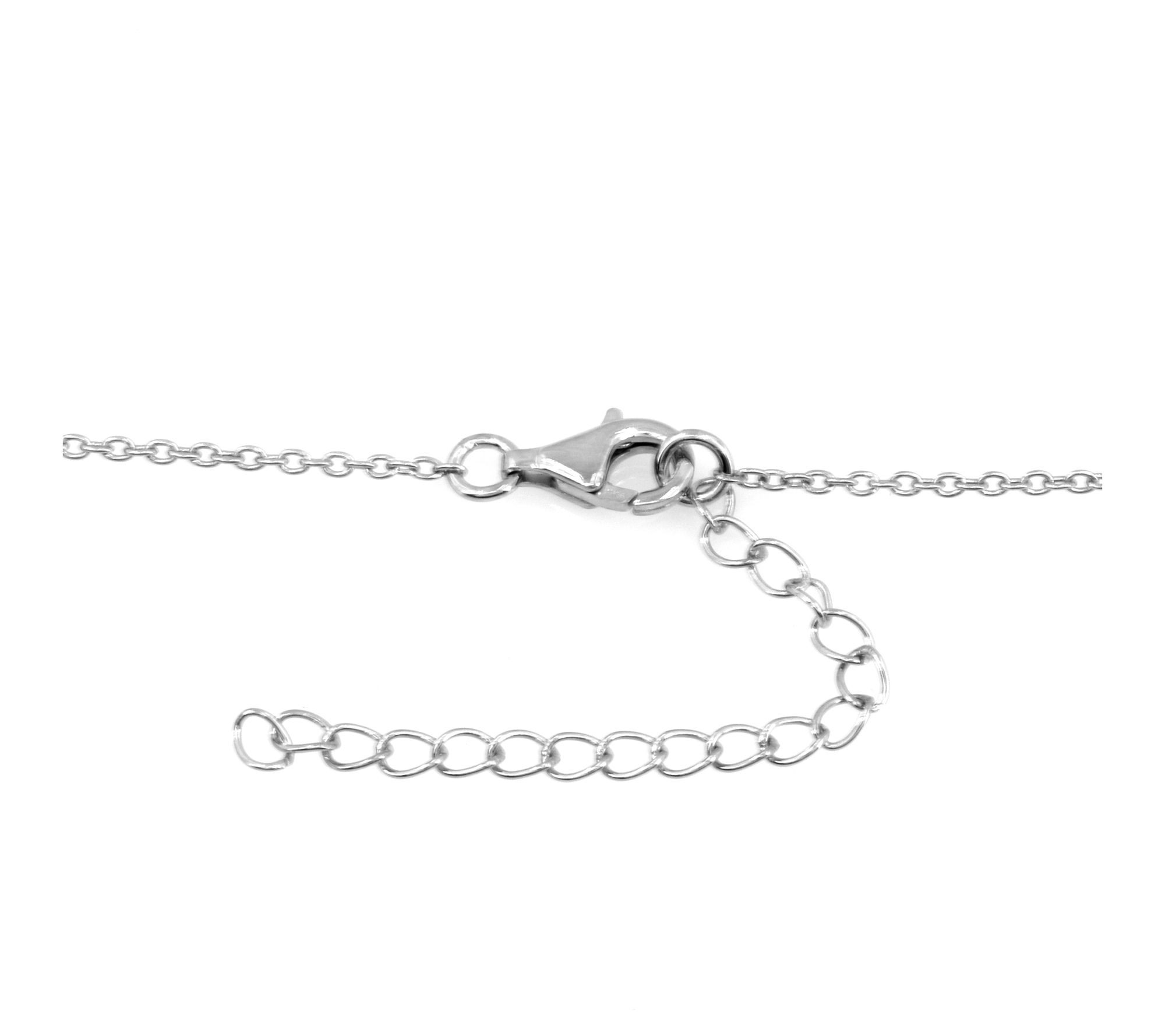 Approximate measurements: Chain 18"L x 1/6"W, plus a 2"L extender; Pendant 1-1/4"L x 1/4"W