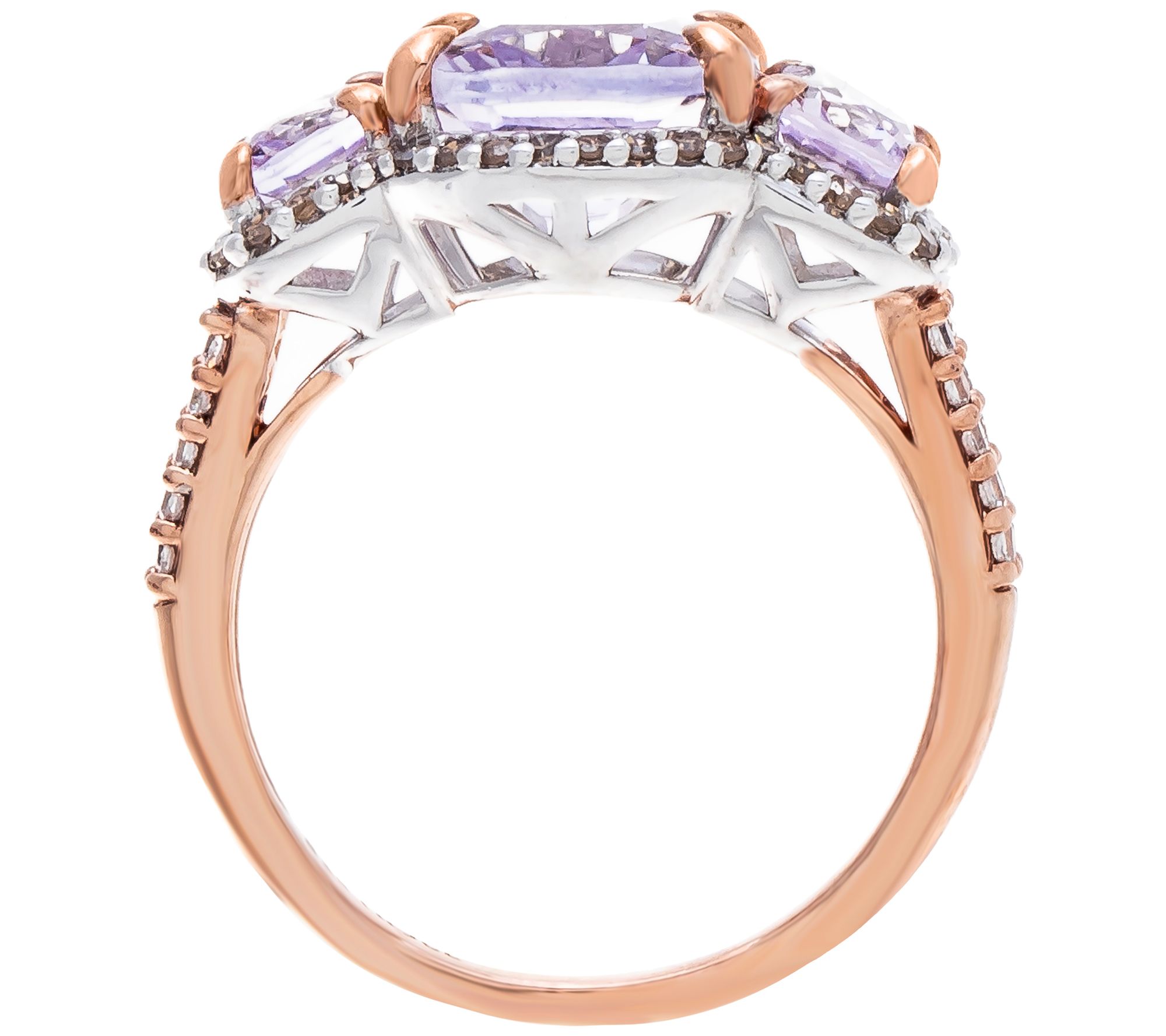 Affinity Gems Amethyst & White Zircon Ring, 14KRose Plated