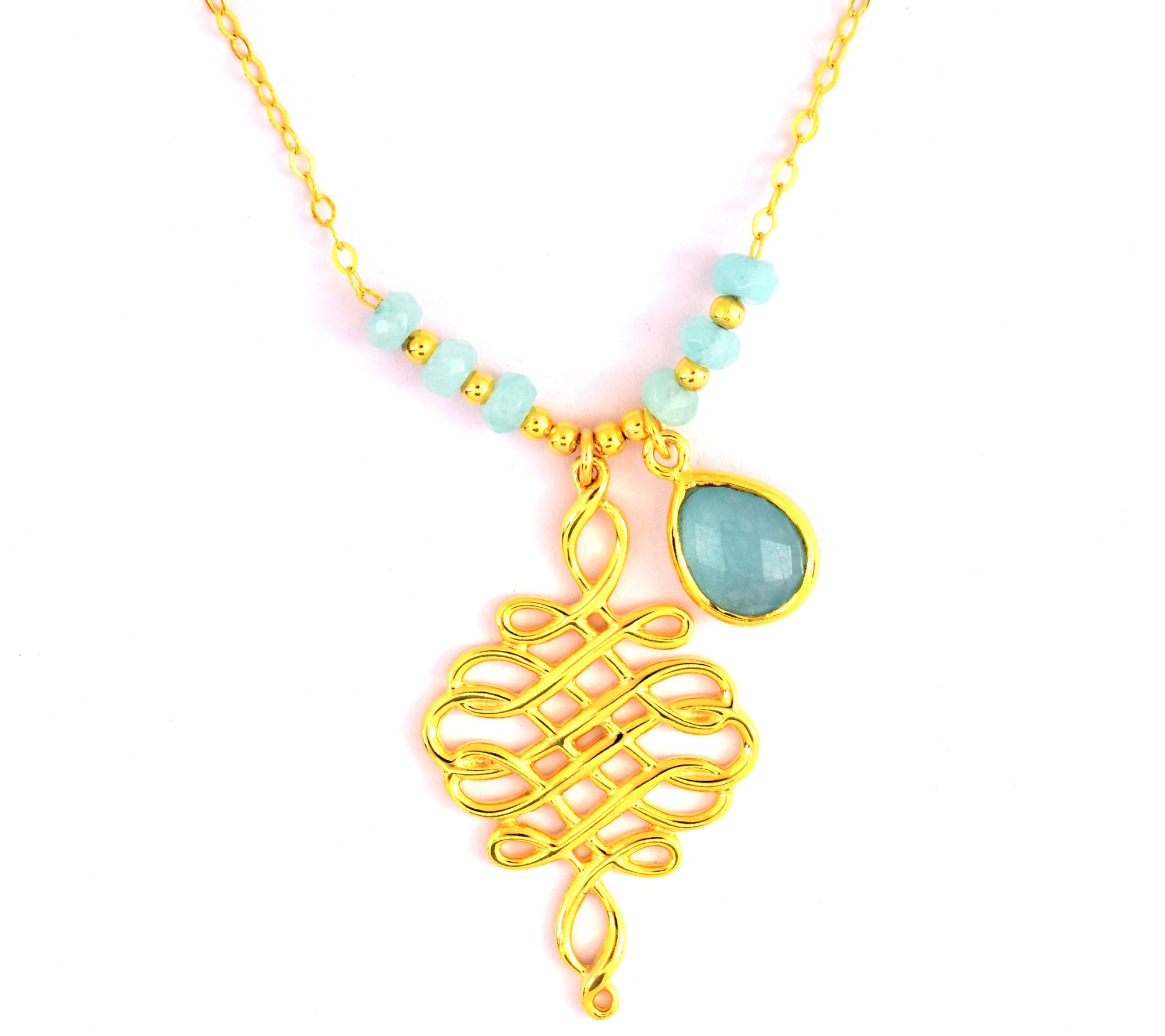 This fun necklace is giving us major summer vibes. With the gleaming shine of 14K gold-plating and the cool blue of aqua quartz, it's sure to brighten up any look. From Affinity® Gems.