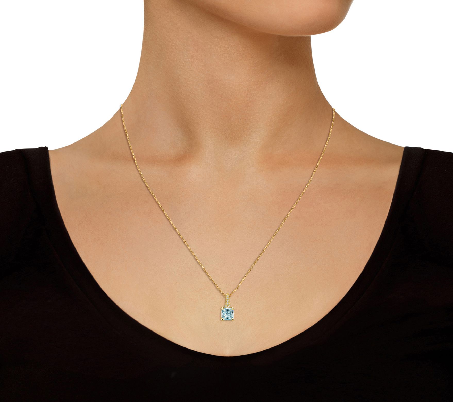 Invite a touch of glam style to any look with the dazzling beauty of this aquamarine pendant and chain set with diamond accents set right in the bail. From Affinity® Gems.