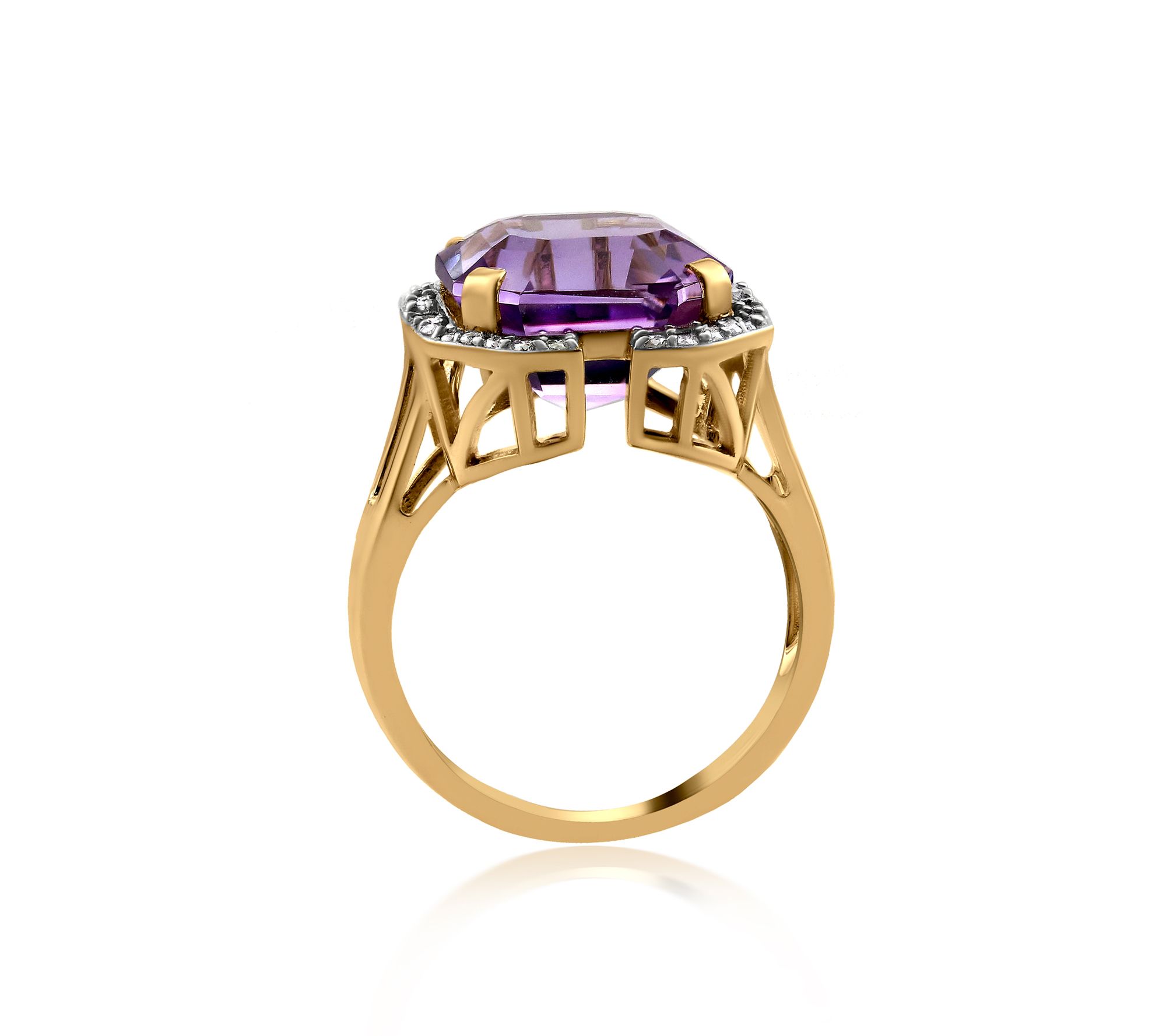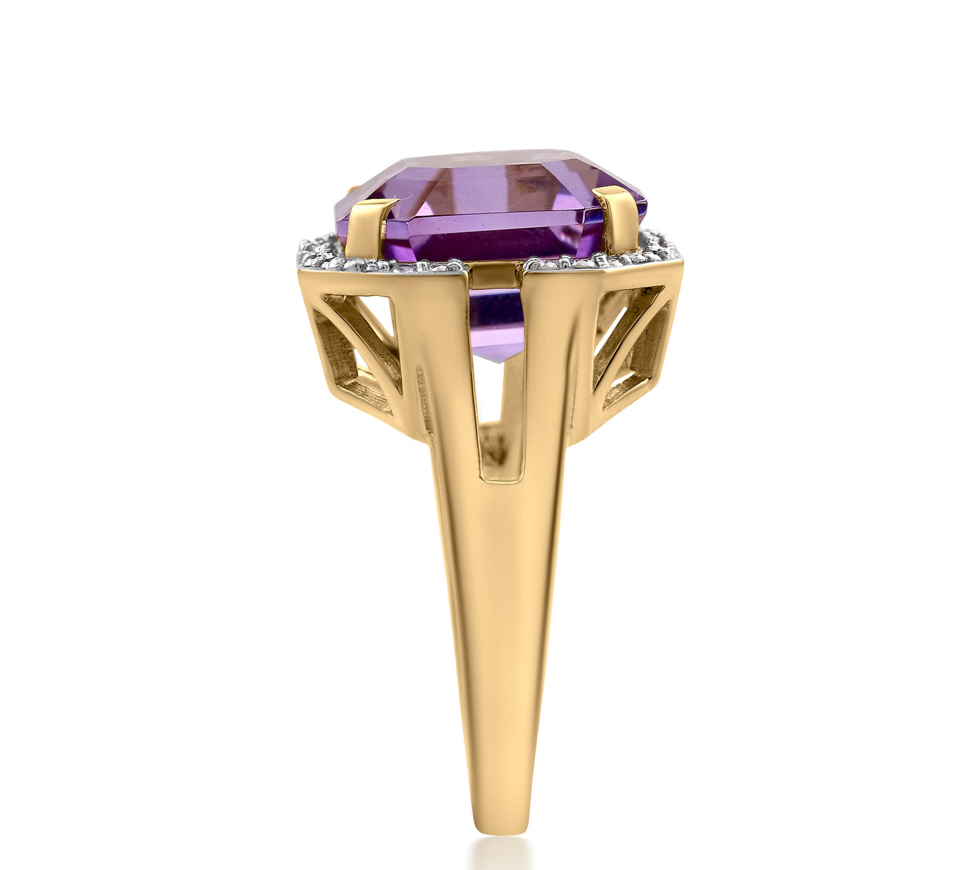 Add glitz and glamour to your look with this beautiful ring, showcasing a prong-set Asscher cut gemstone surrounded by prong-set round diamond accents and a tapered shank.
