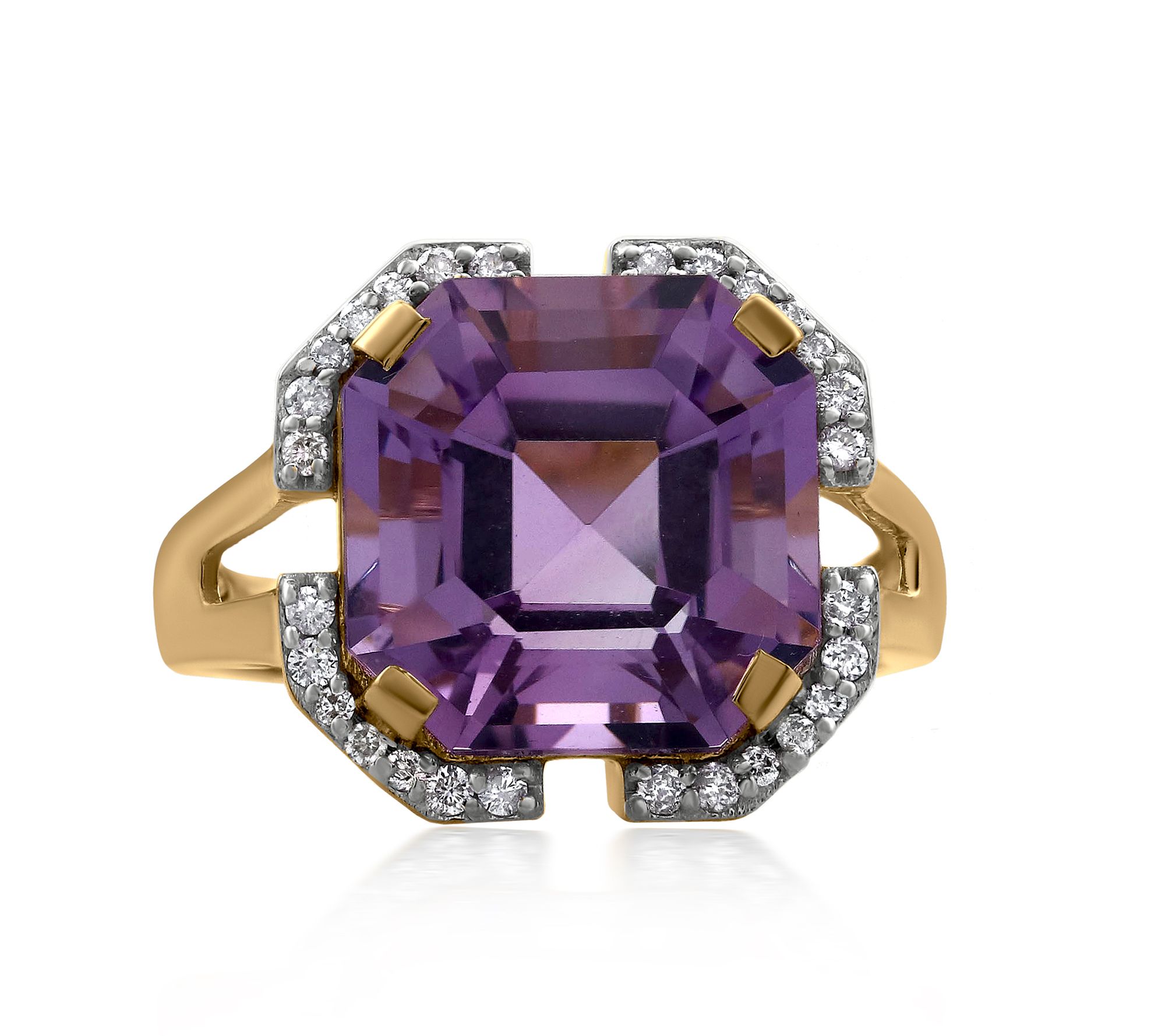 Affinity Gems Asscher Cut Gemstone & Diamond Ri ng, 14K Gold