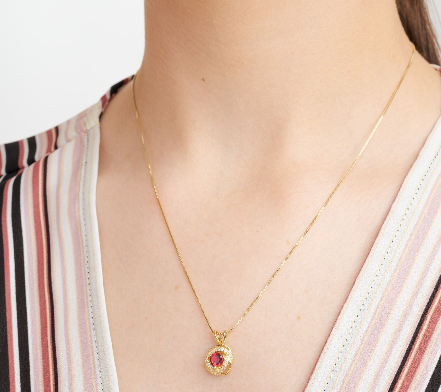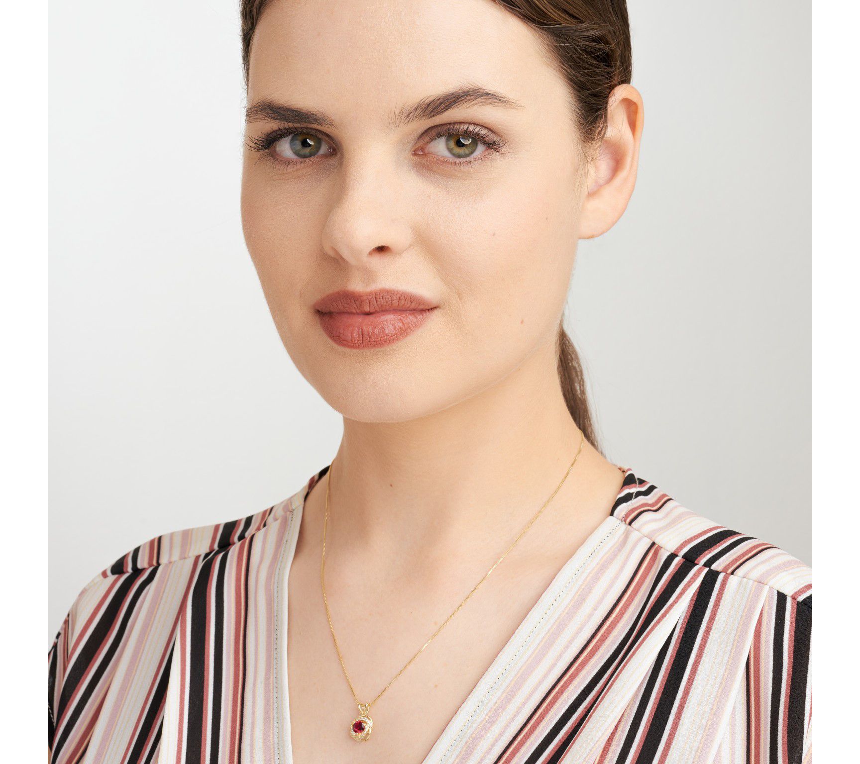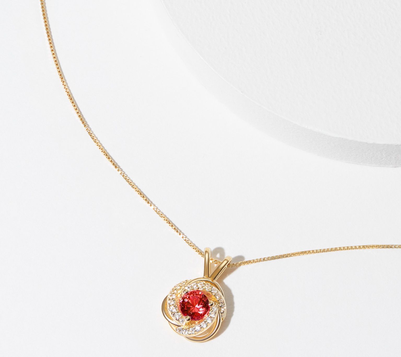 A symbolic celebration of your special day, this Affinity Gems birthstone pendant features a love knot design with your birthstone, highlighted by created white sapphires. From Affinity Gems.