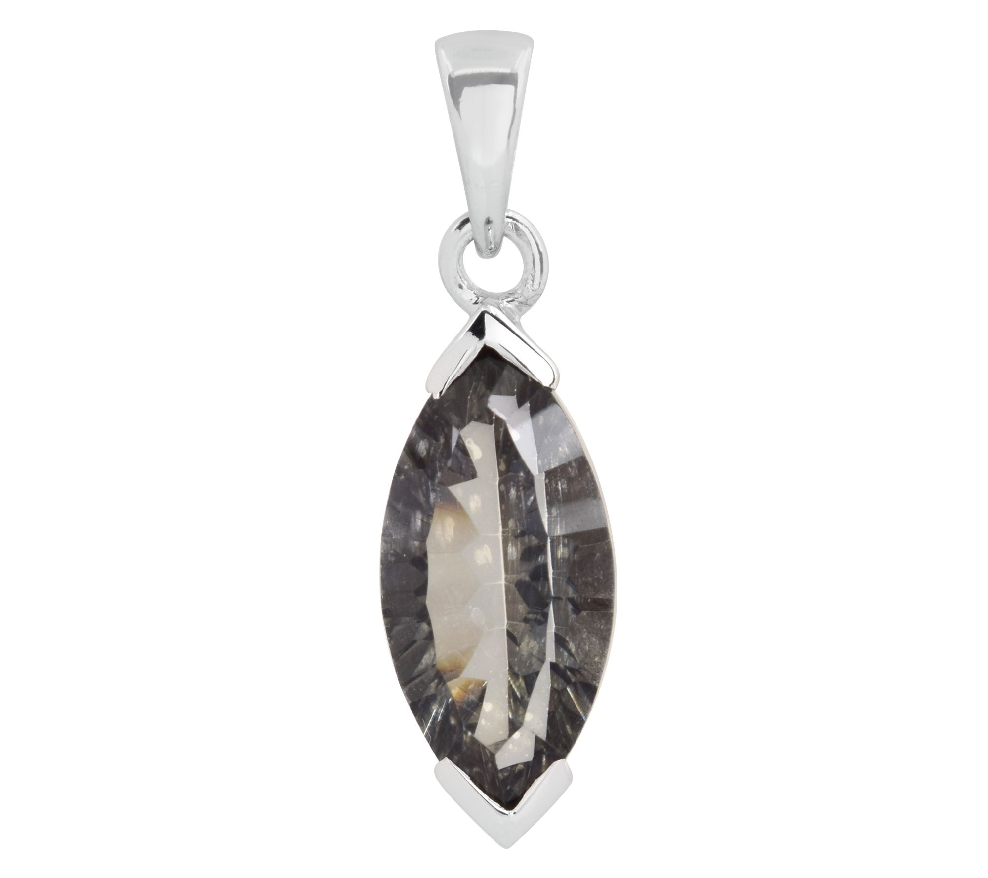 Enjoy the elegance and sophistication this exquisite pendant brings to your collection. Crafted from sterling silver with a sleek rhodium plating, it features a mesmerizing black coated quartz gemstone, cut to perfection in a stunning marquise shape. Perfect for elevating any outfit, this timeless piece seamlessly transitions from day to night, making it an essential addition to your jewelry box. From Affinity Gems.