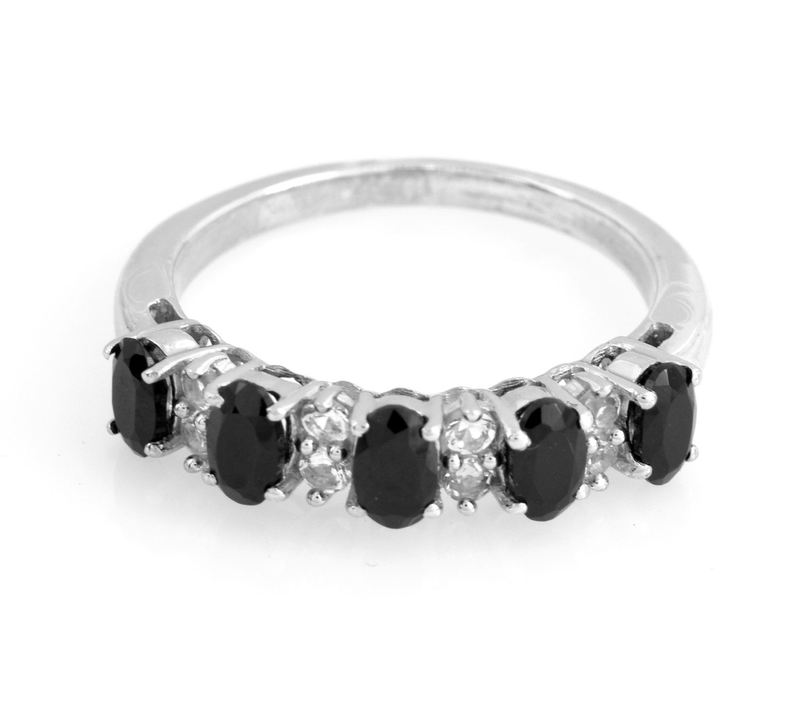 Total gemstone weights are approximate: black spinel 1.55 carats; white topaz 0.25 carat