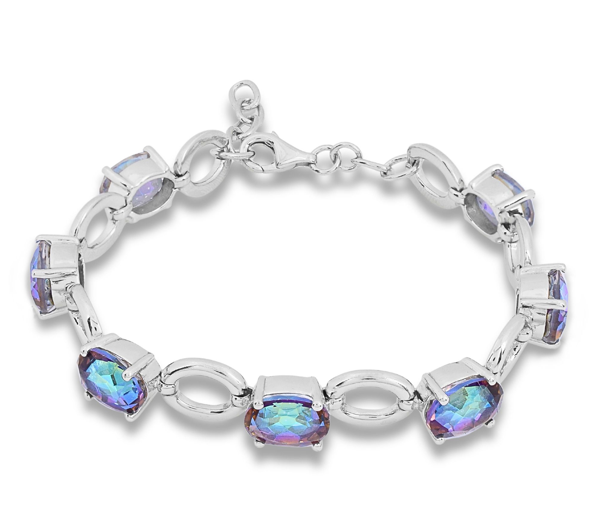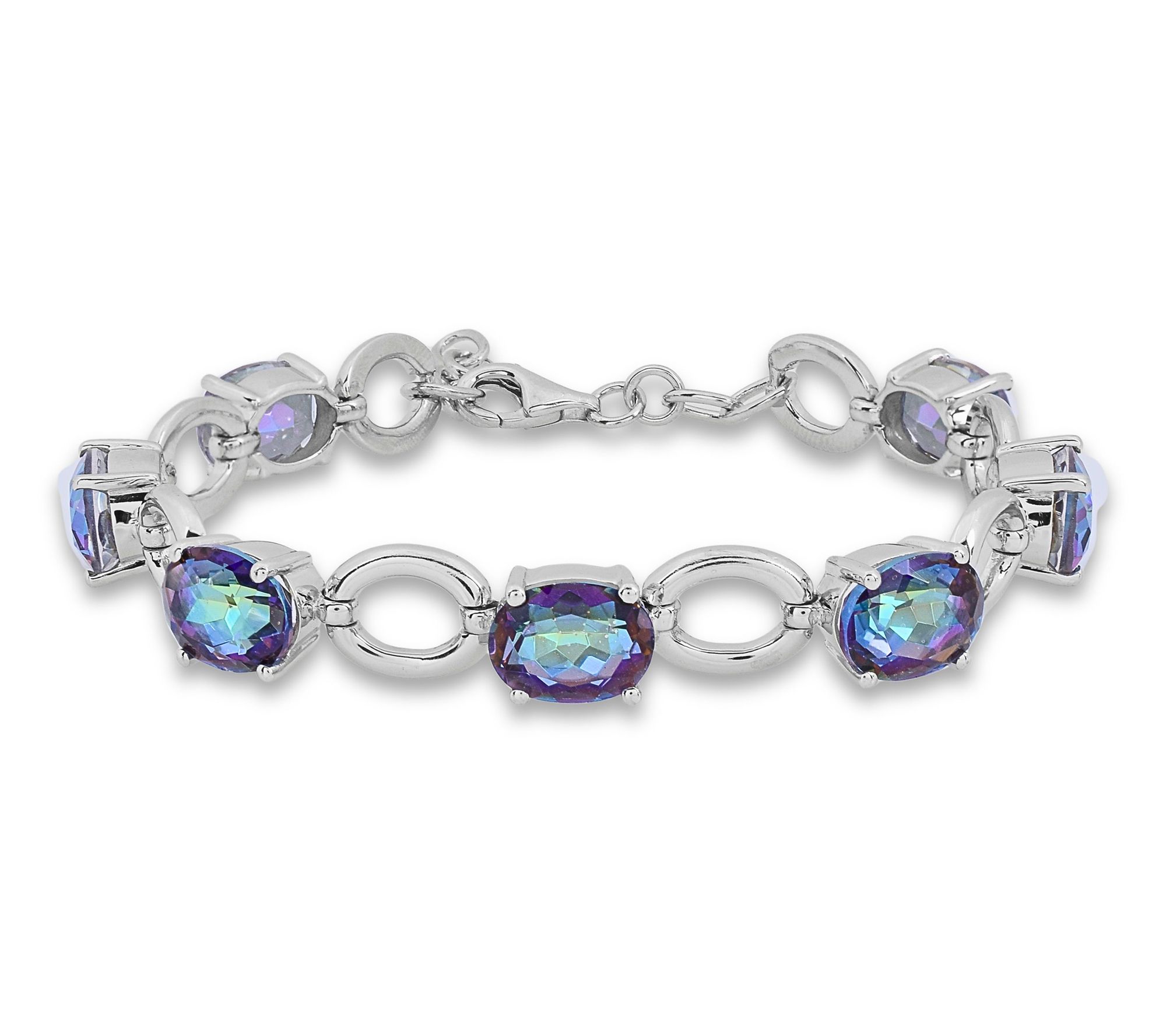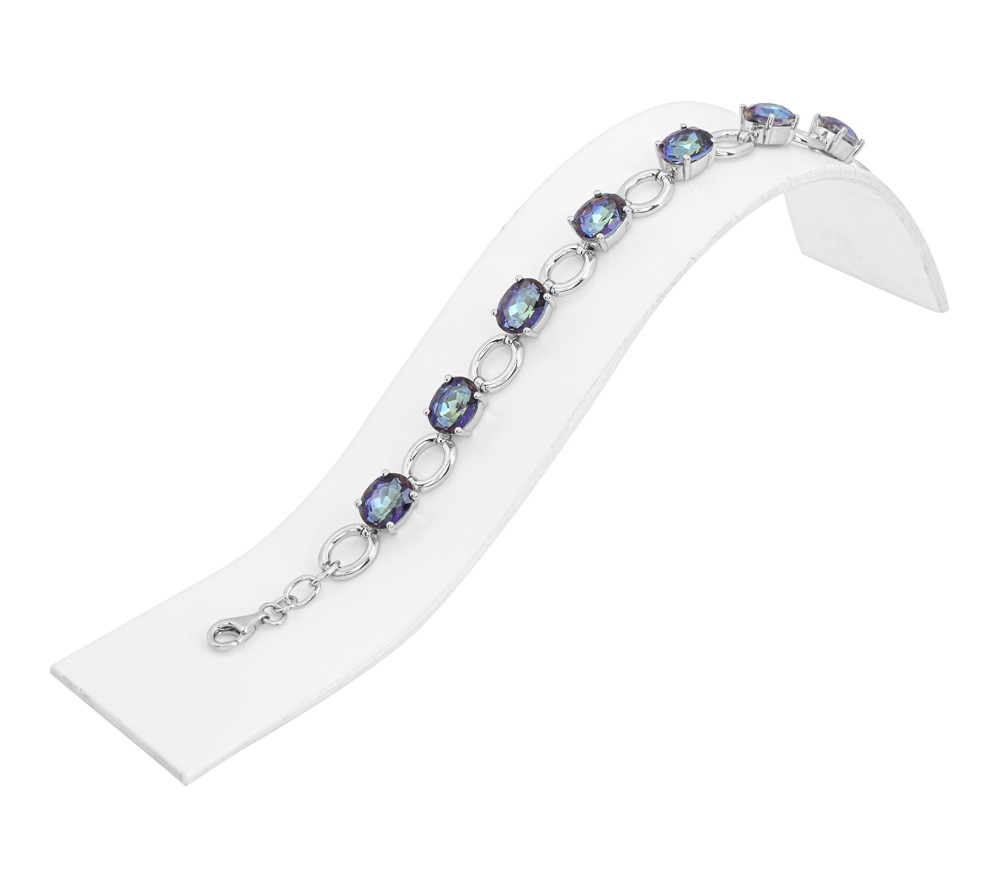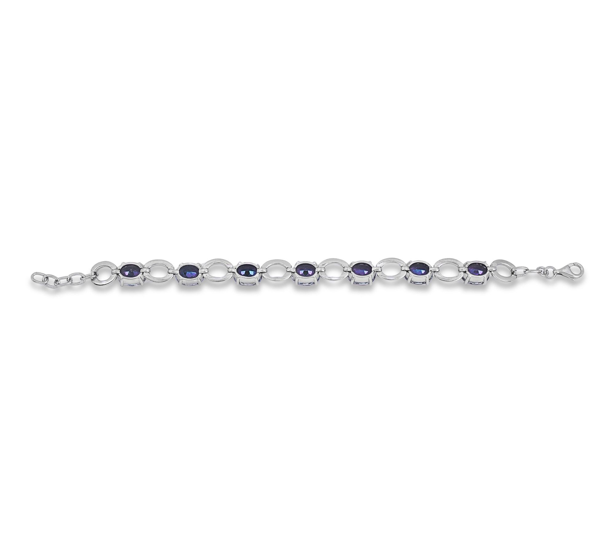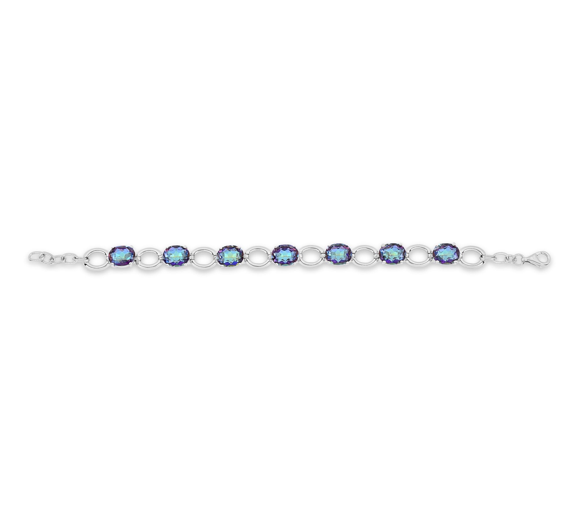 Add a splash of color to your everyday look with this station bracelet featuring vibrant blue coated quartz stones set in gleaming sterling silver. The oval links and prong-set gemstones lend eye-catching sparkle, making this bracelet perfect for both workday chic and weekend adventures. From Affinity® Gems.