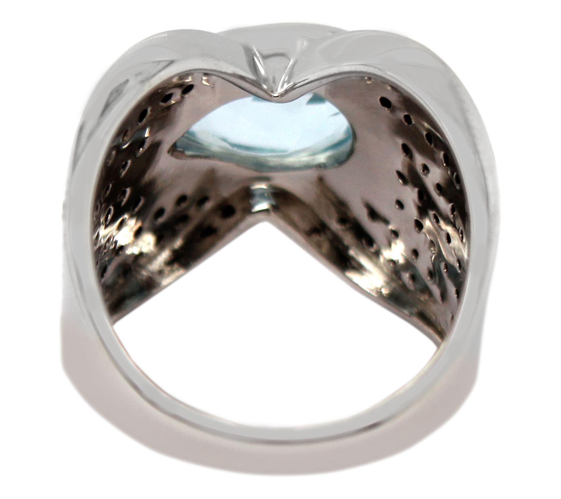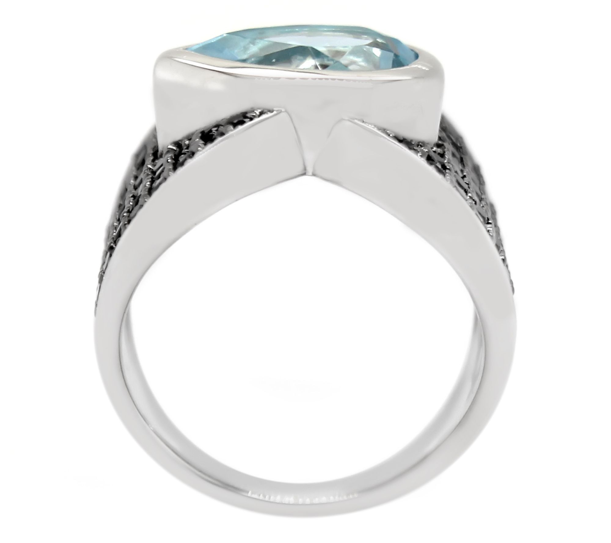 Drinks at 8? Make a bold fashion statement with this sky blue topaz cocktail ring, a splashy design surrounded in black spinel gemstones. From Affinity® Gems.