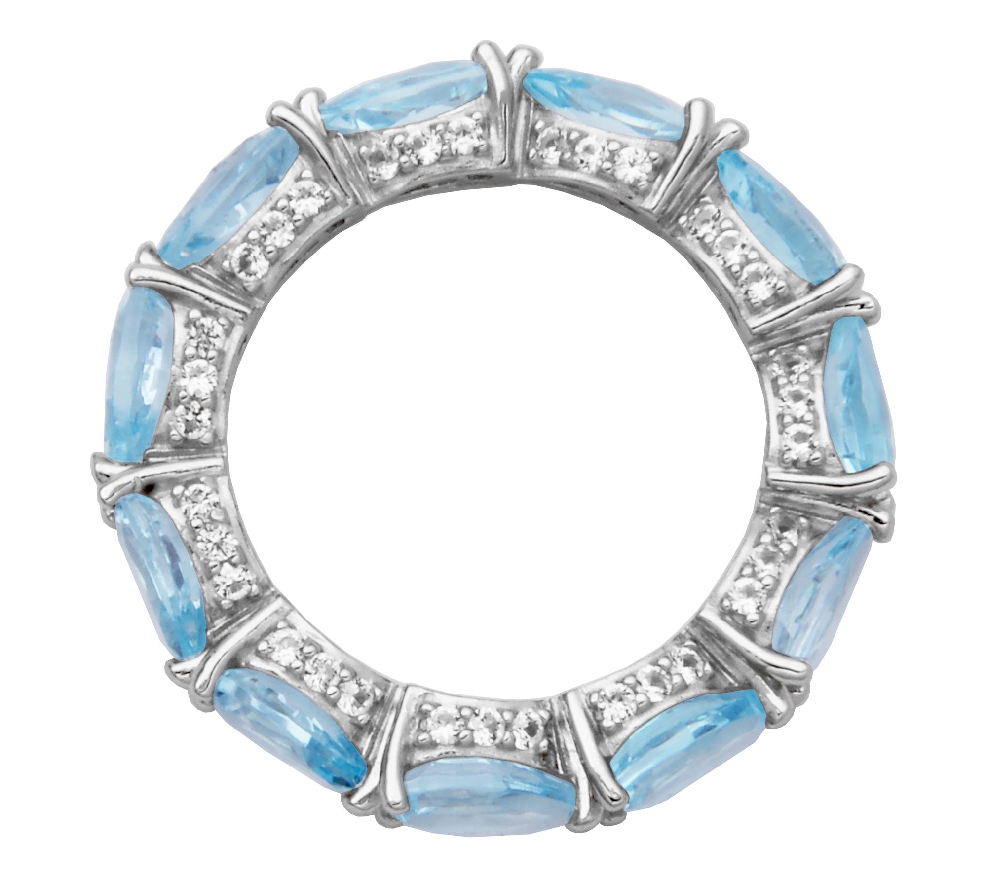 • Total gemstone weight is approximately 5.60 carats; Blue topaz 4.95 carats; lab-created white sapphire: 0.65 carats