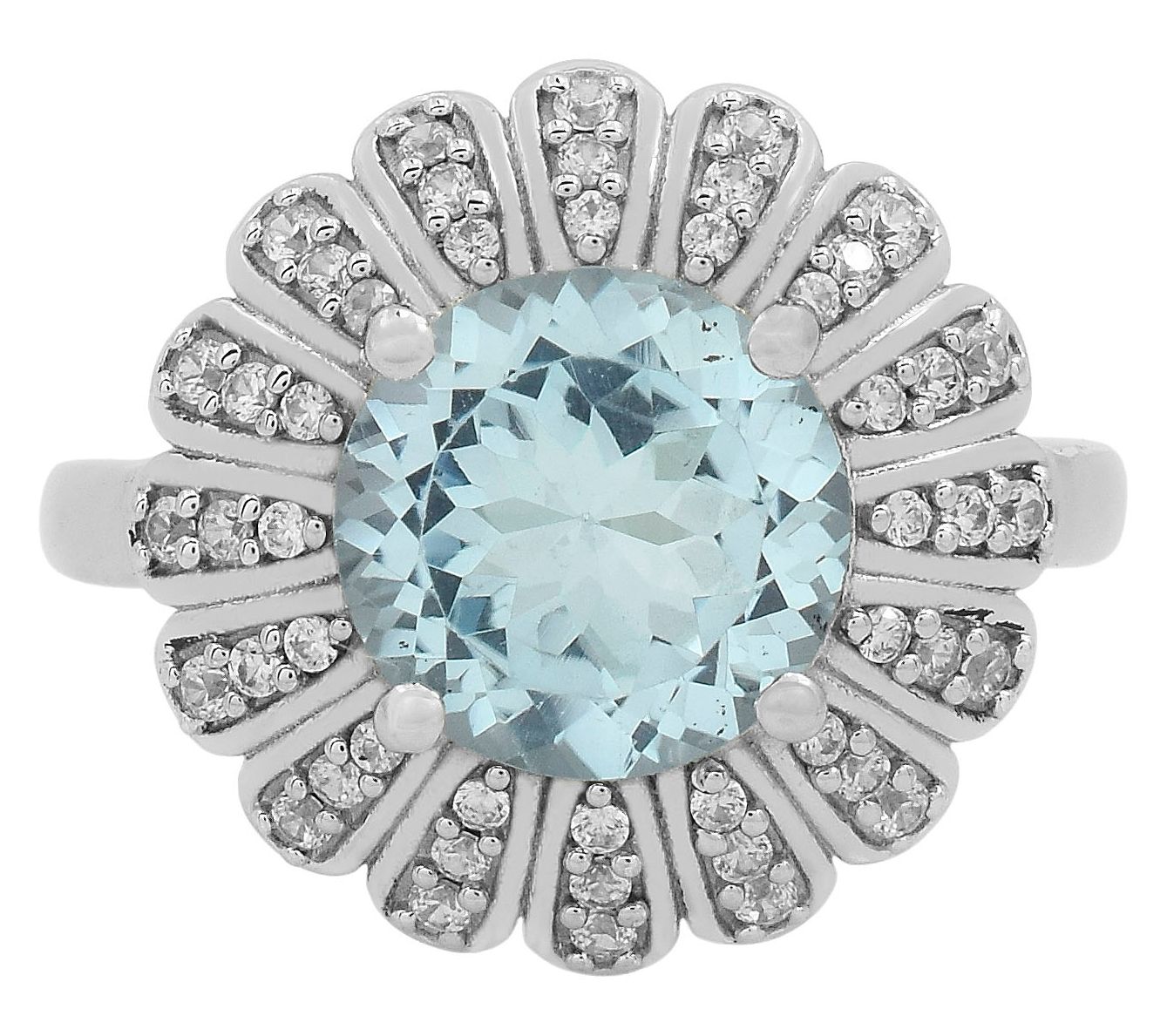 Affinity Gems Blue Topaz Floral Cocktail Ring,Sterling Silver