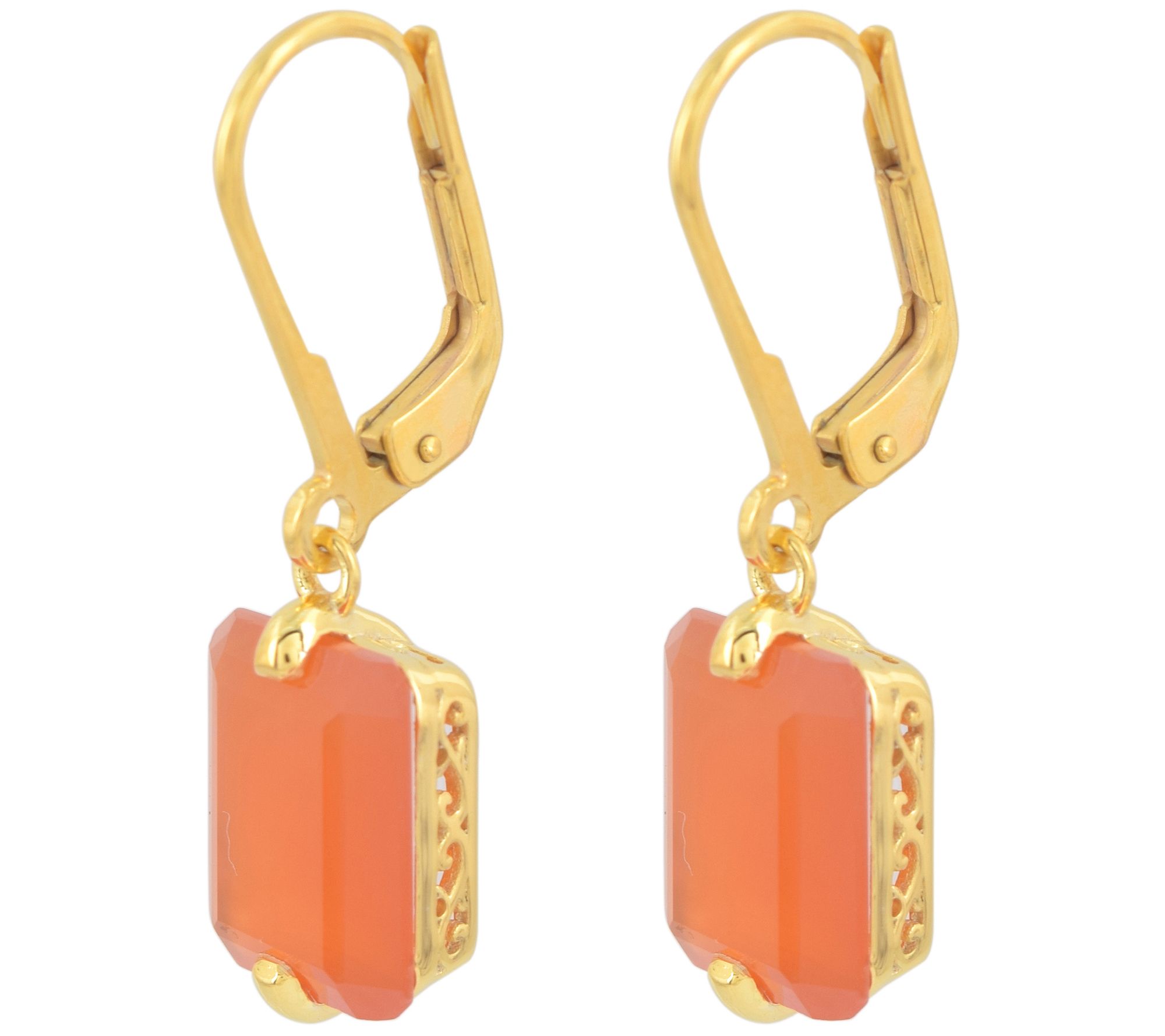 A fiery pop of color can transform the look of any outfit and these dangle earrings really deliver with their bold, octagon-cut carnelian gemstones. From Affinity® Gems.