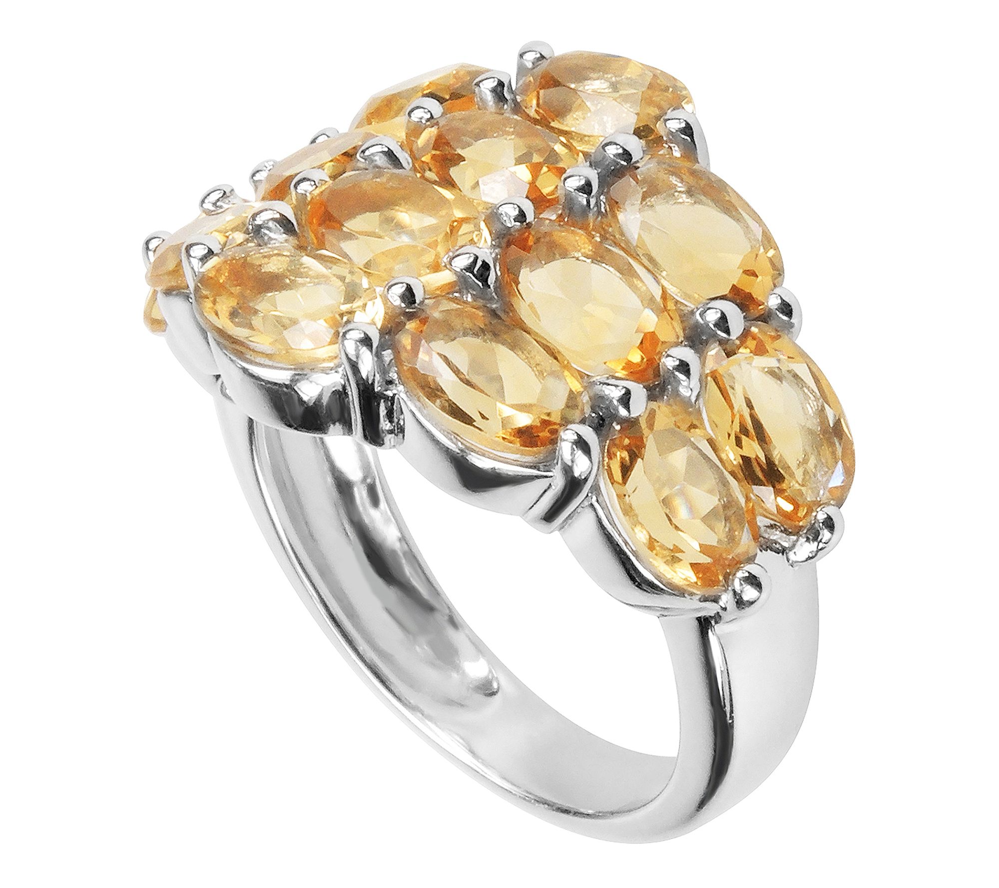 • Oval, prong-set citrine gemstones; polished band