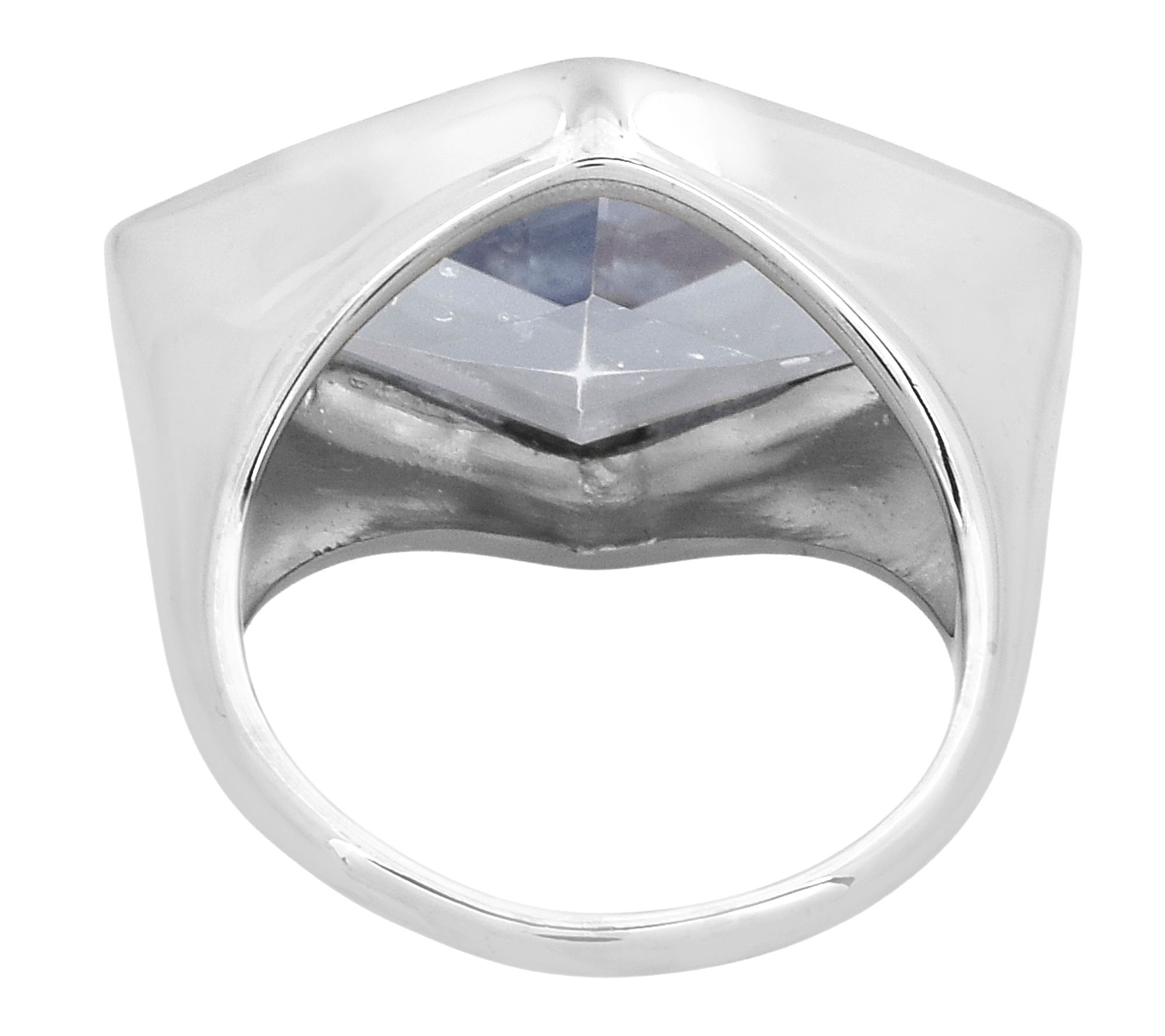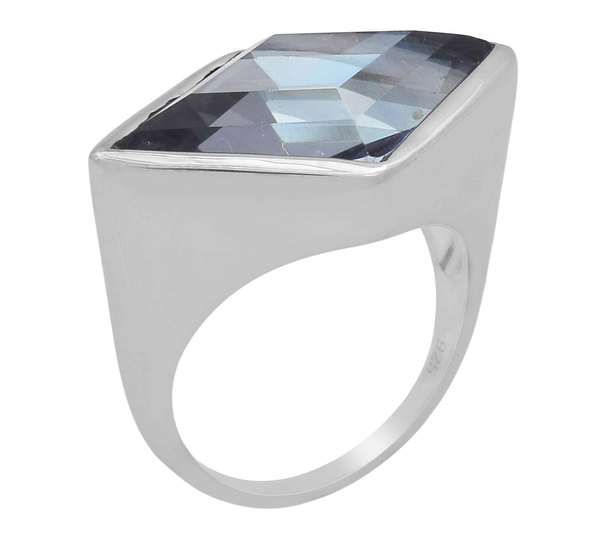 Slip on a dazzling burst of color with this rhombus-cut coated quartz cocktail ring, crafted in platinum-plated sterling silver. Whether you're dressing up for a night out or adding a bold accent to your everyday style, the vibrant blue gemstone and sculptural solitaire setting make an unforgettable statement. From Affinity® Gems.
