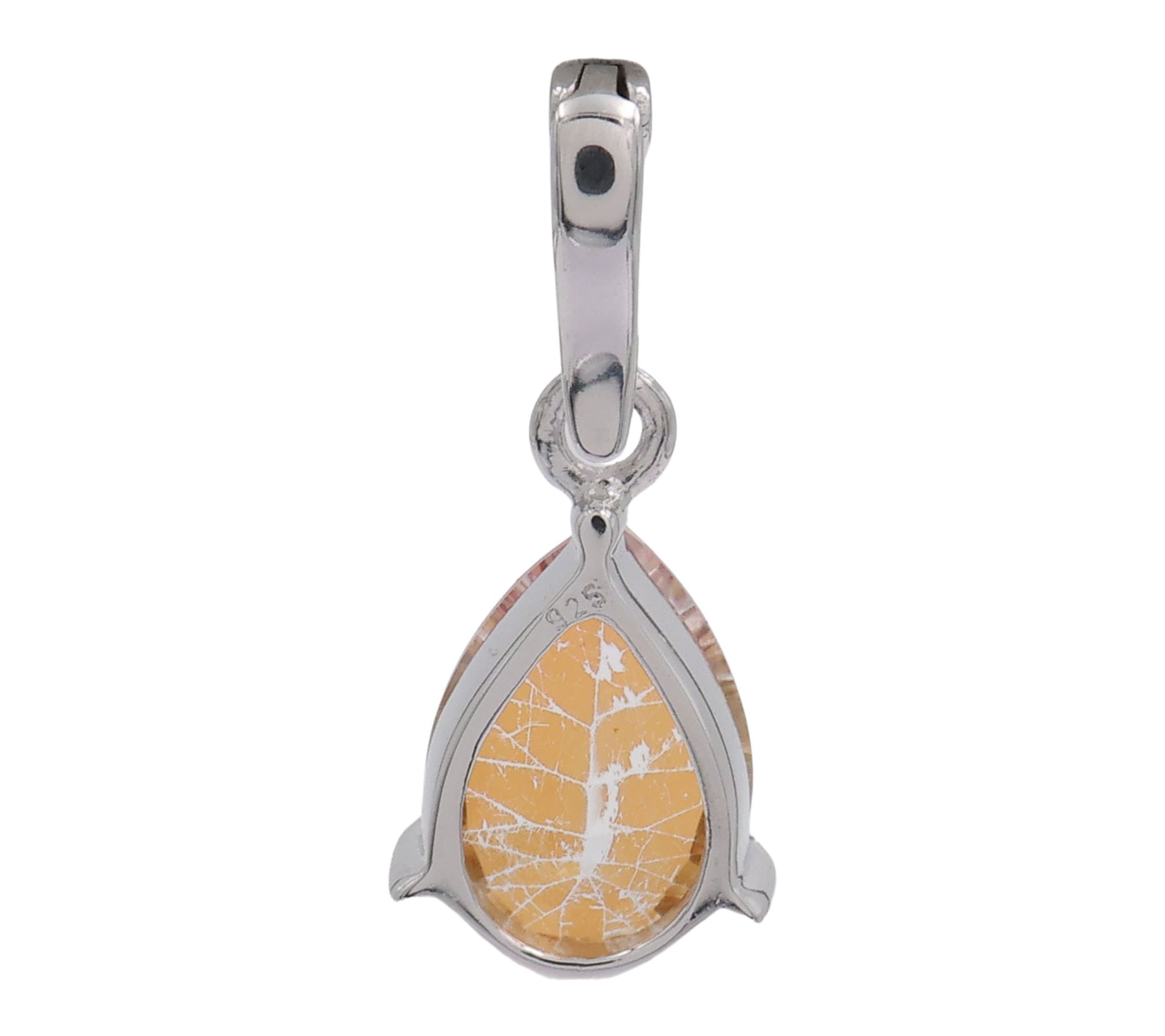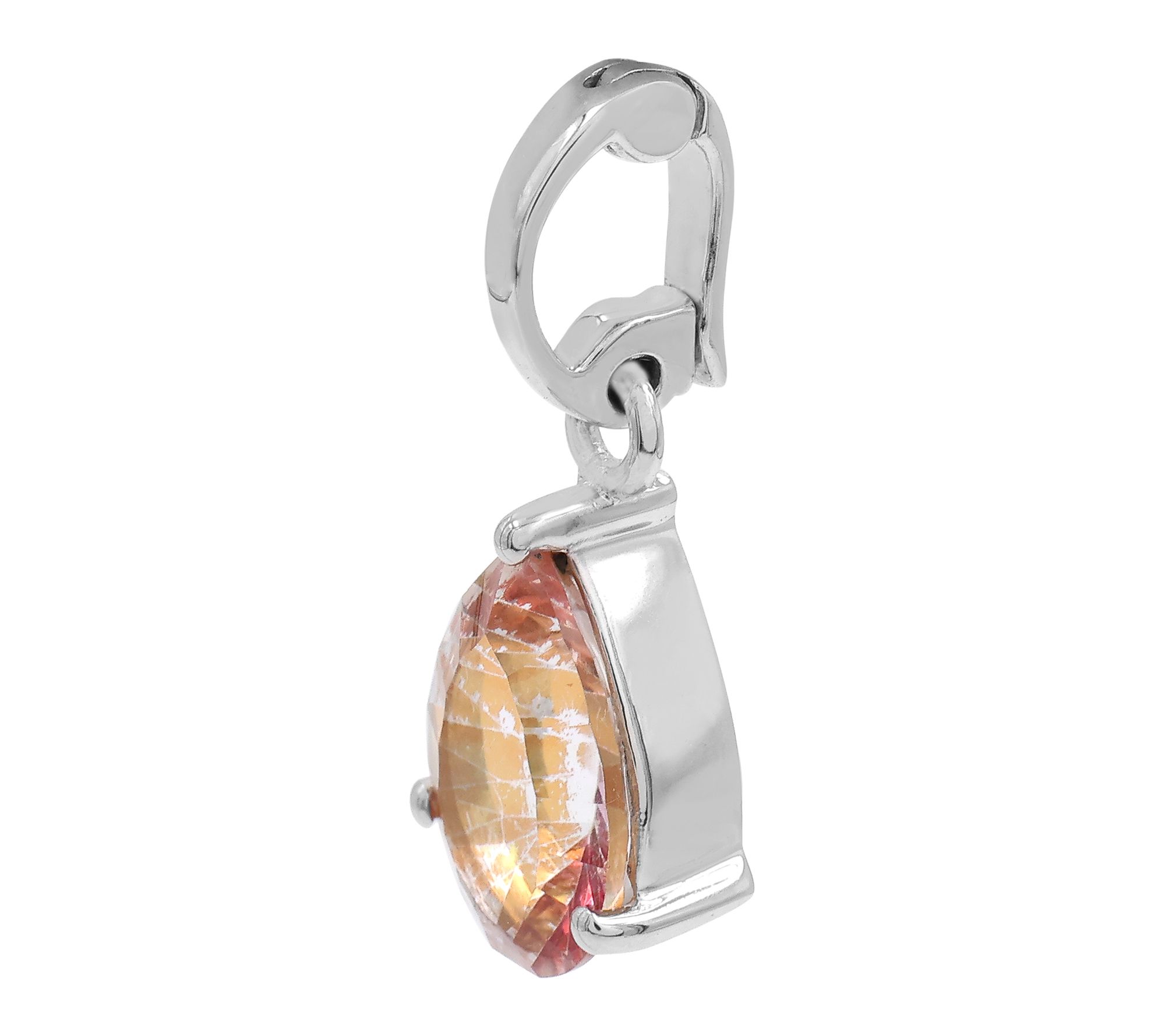 Pear-cut orange-coated quartz; prong setting; Vario bail; solitaire enhancer style