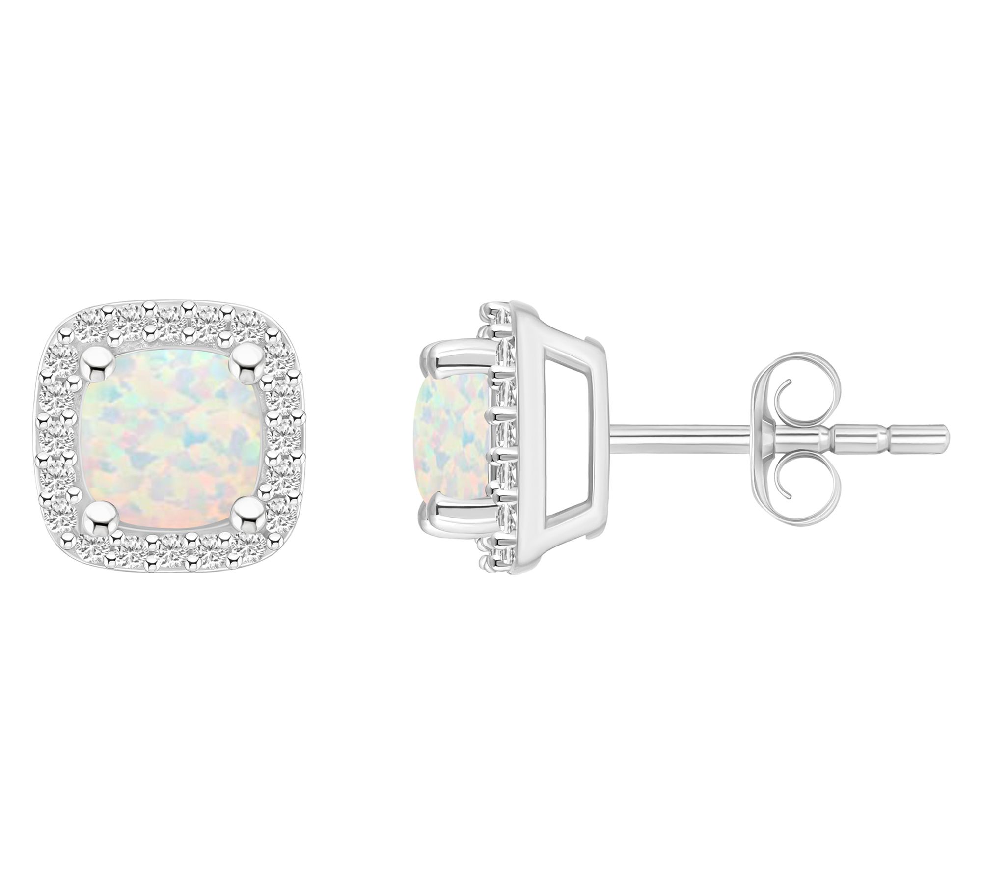 Attractively designed for every occasion, these cushion-cut earrings feature created gemstones surrounded by luminous created white sapphire halos. From Affinity® Gems.