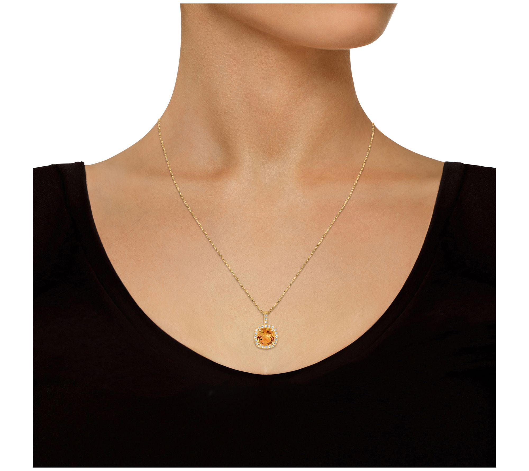 Get ready to turn heads thanks to the incredible sparkle of this gemstone pendant and chain set that's accented with a halo of glittering diamonds. From Affinity® Gems.