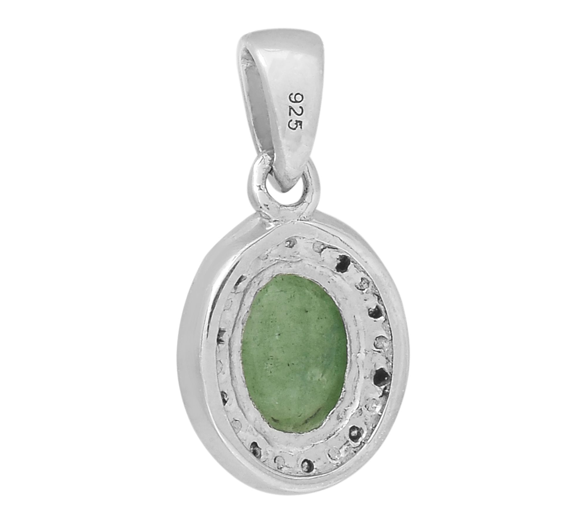 Add a lively splash of green to any outfit with this pendant, featuring an oval-cut dyed emerald and shimmering round-cut zircons, beautifully prong set in platinum-plated sterling silver. Whether you're dressing up for a special event or brightening your everyday look, this eye-catching slide pendant brings just the right touch of elegance you'll enjoy time and again. From Affinity® Gems.