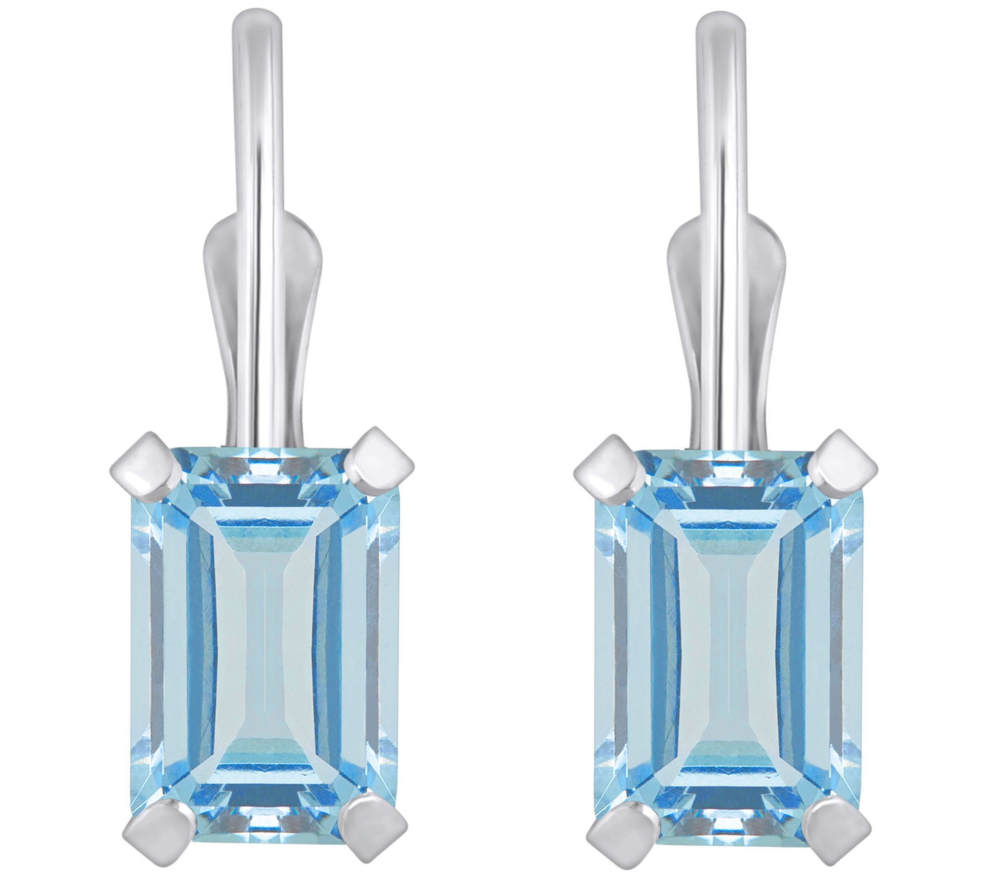 Affinity Gems Emerald Cut Aquamarine Leverback Earrings, 10K