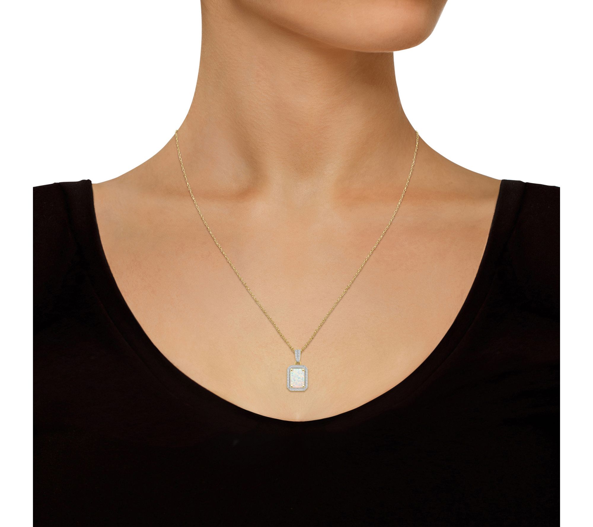 Imagine yourself adorned with this stunning necklace featuring an emerald-cut created gemstone, bathed in the glow of 10K gold. Each piece is elegantly surrounded by a halo of created white sapphires, adding a touch of sparkle that's perfect for any occasion. Whether you're dressing up for a special event or simply adding a hint of sophistication to your everyday look, this necklace is sure to make you shine. From Affinity® Gems.